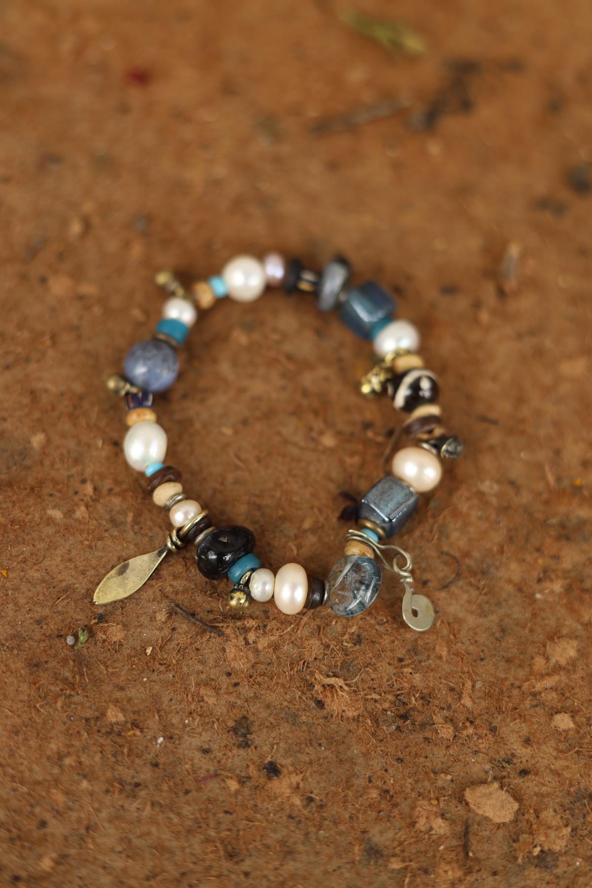 • Akik Detaylı İnci Bileklik