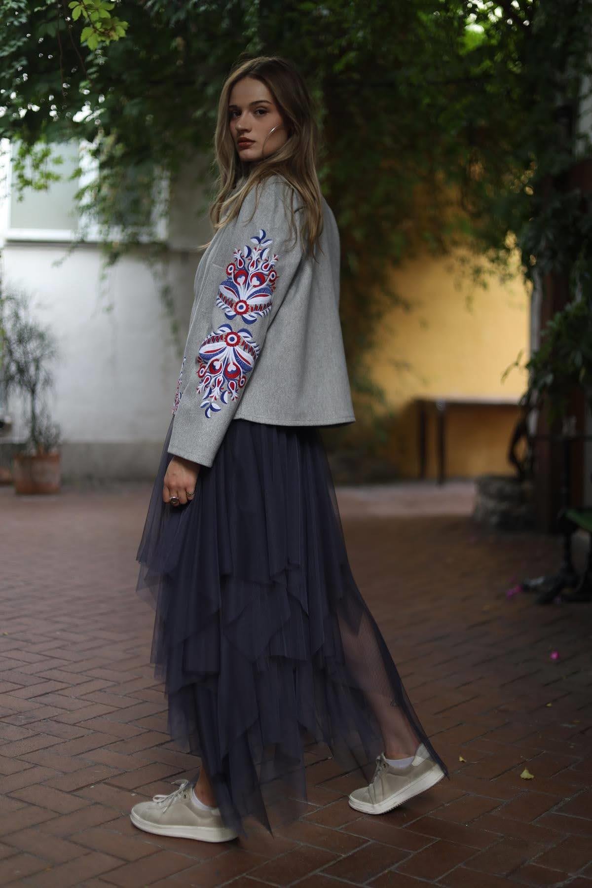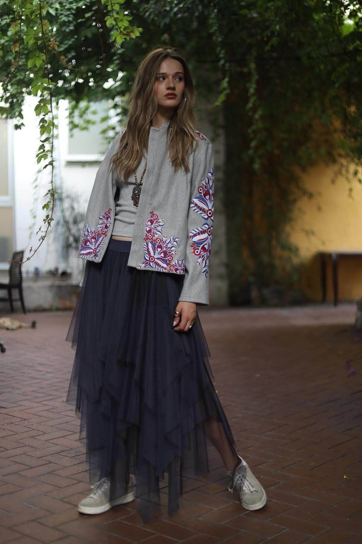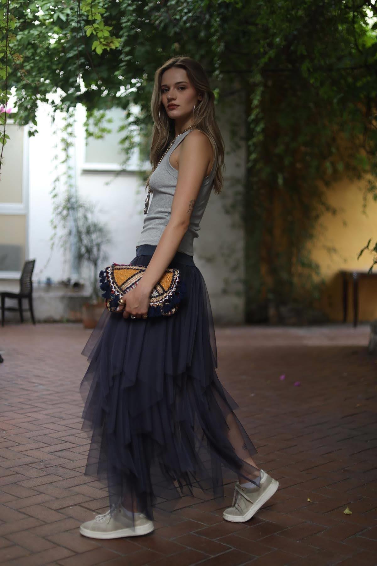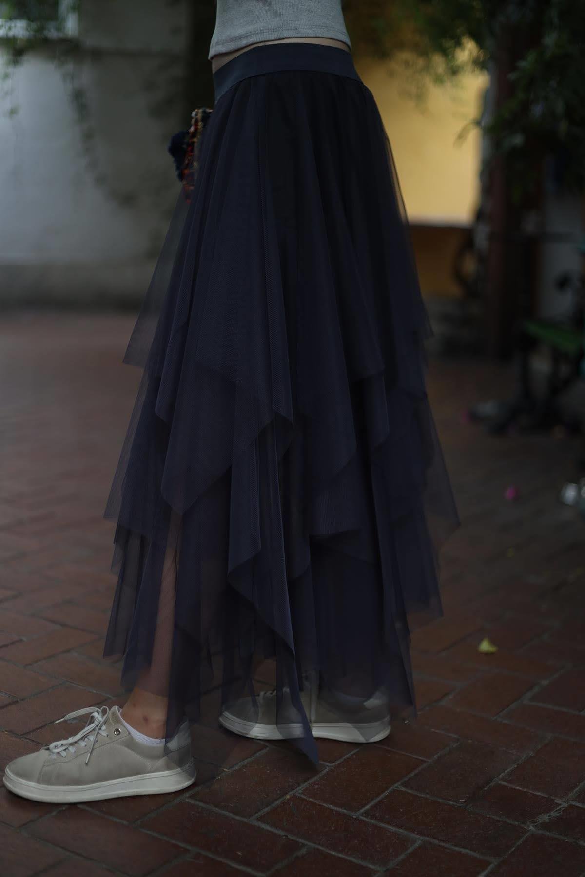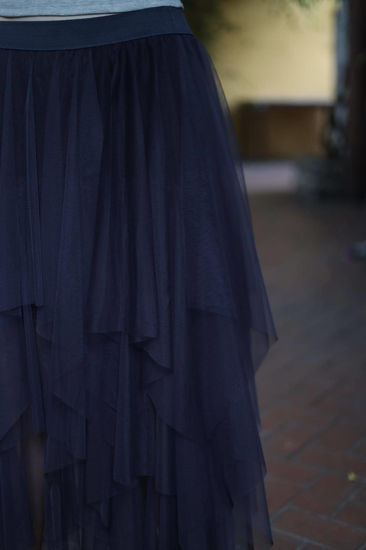 Anthracite Elastic Waist Layered Tulle Skirt