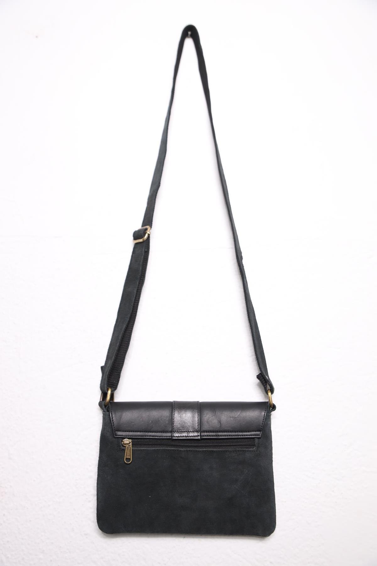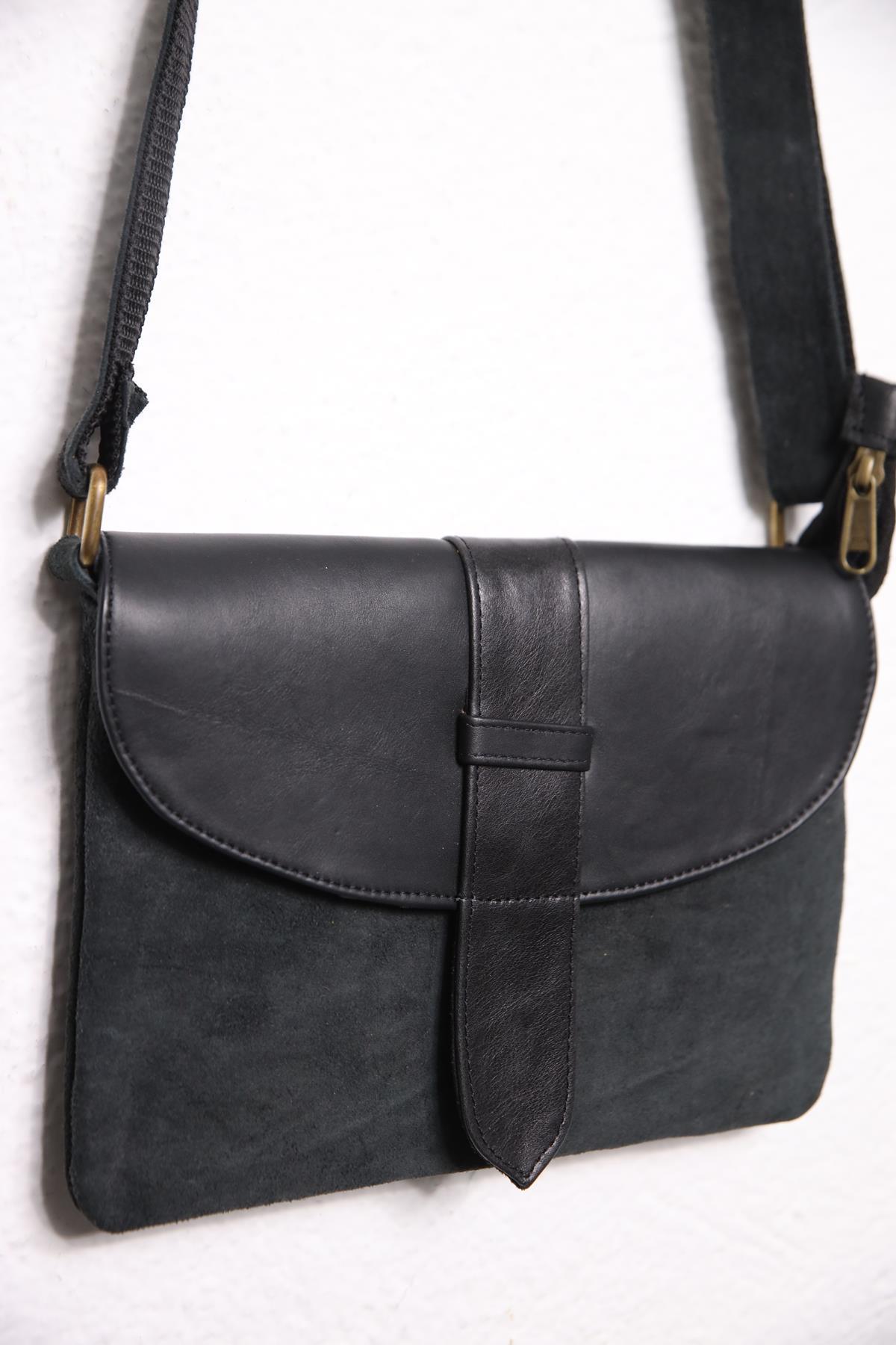 Anthracite Snap Leather Suede Bag