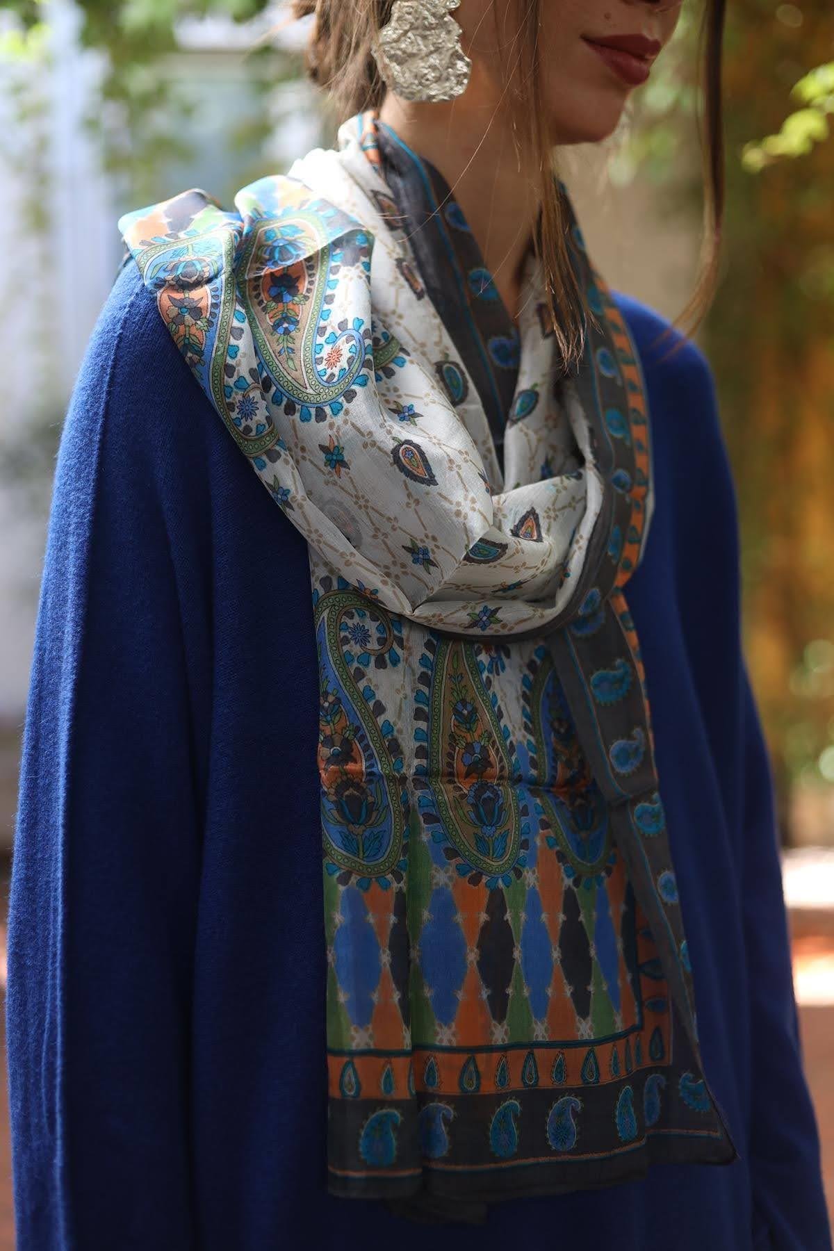 Antrasit Desenli İpek Şal (ASL-ZH-014-IP-ANT3-STD)