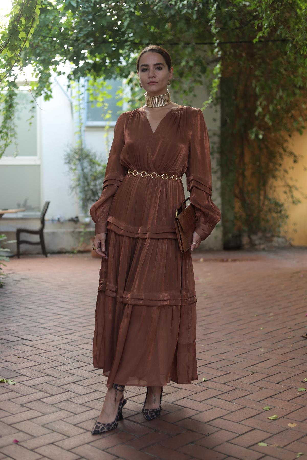 Bakır Rengi Katlı Şık Elbise (KE-PM-086-PO-BA-S/M)