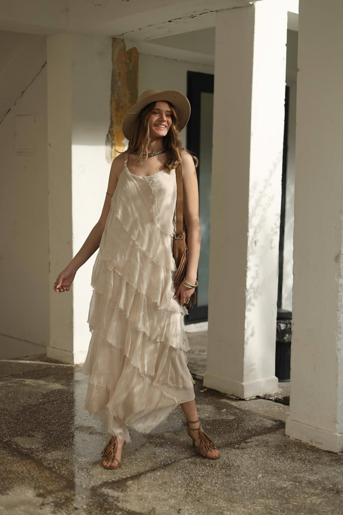 Beige Adjustable Strappy Layered Silk Dress (KE-SIT-003-IP-BEJ-STD)