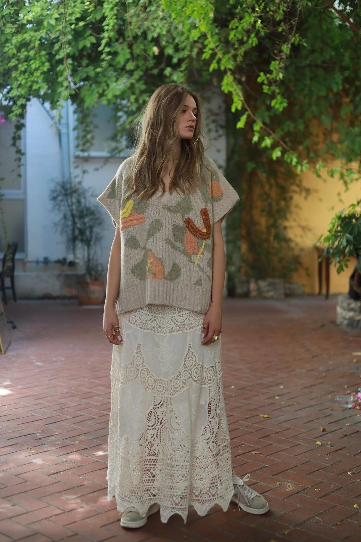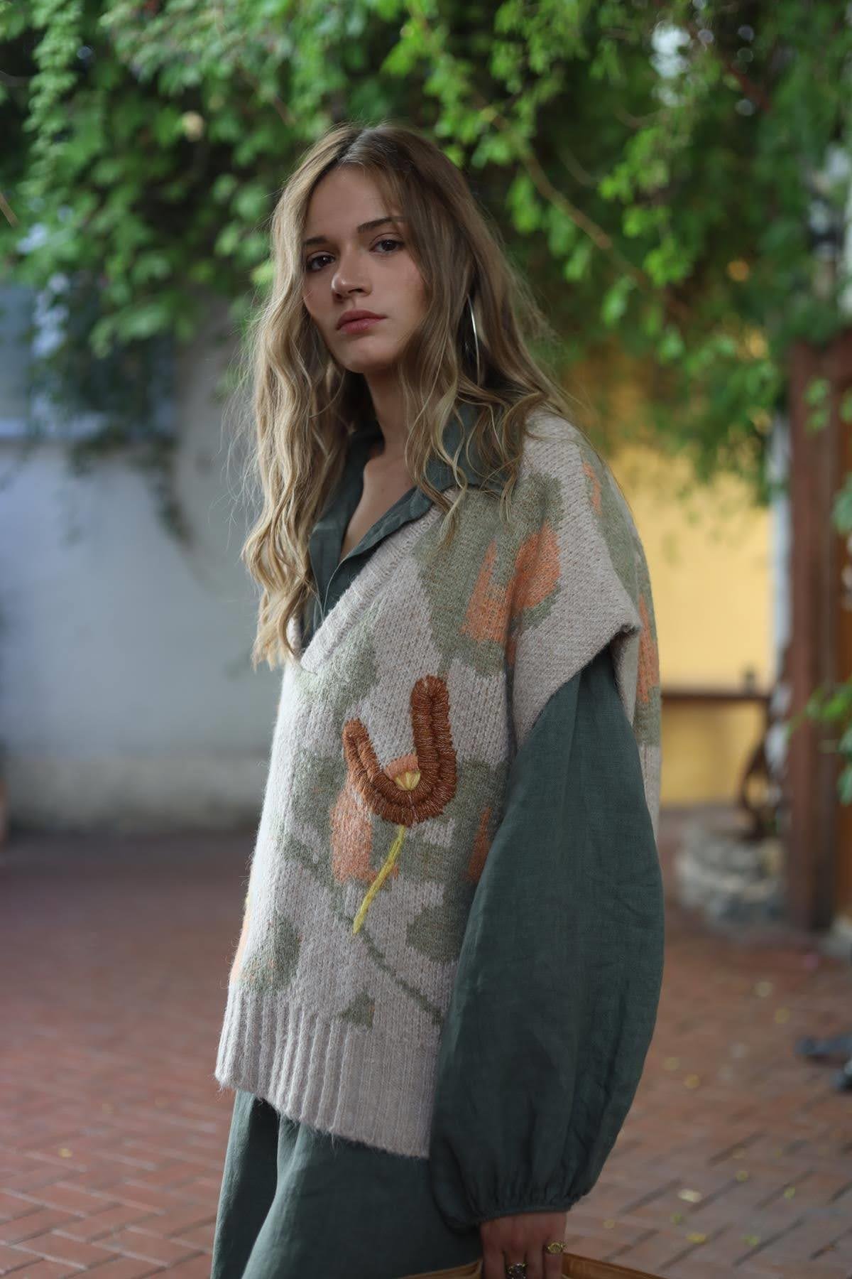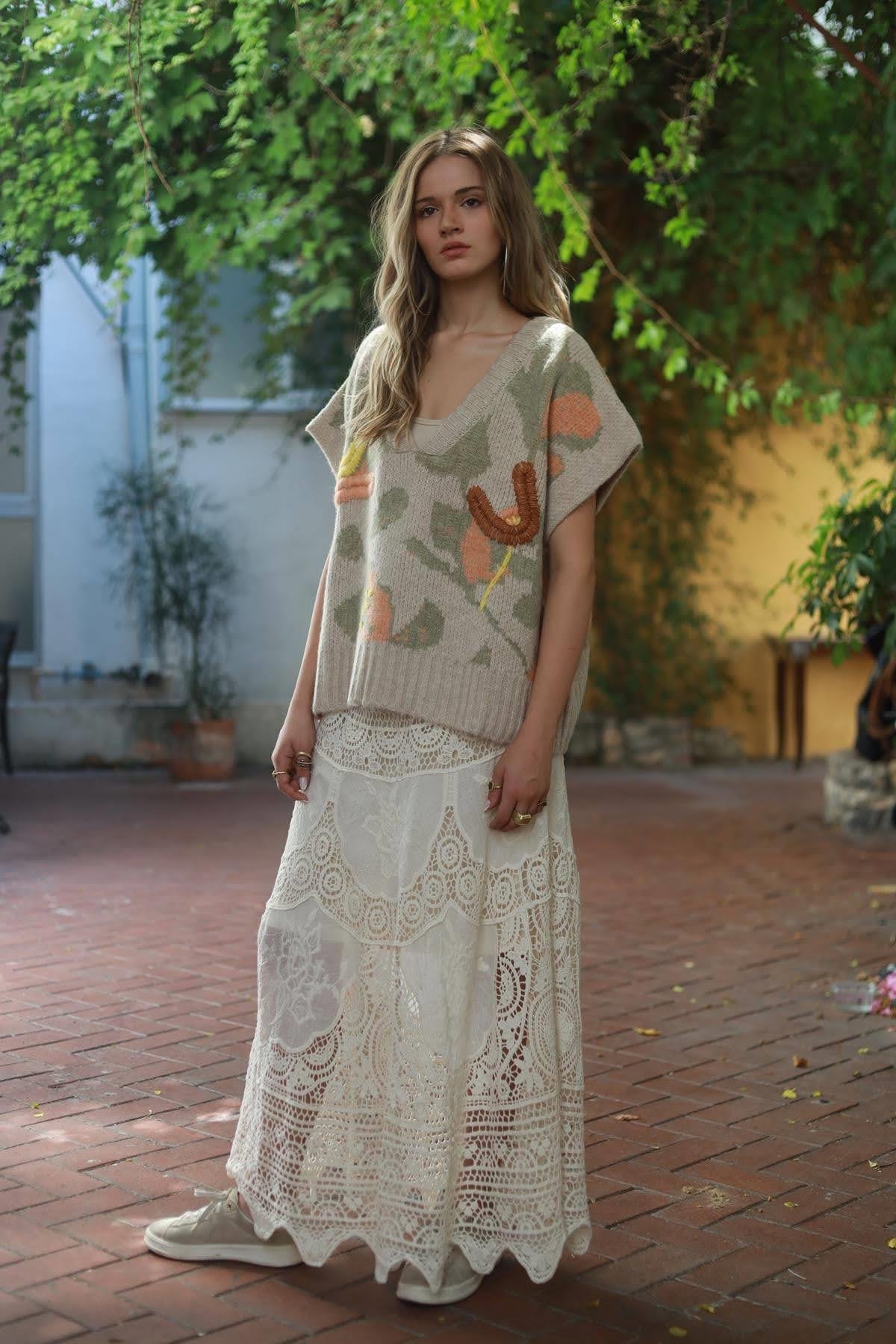 Beige Embossed Pullover