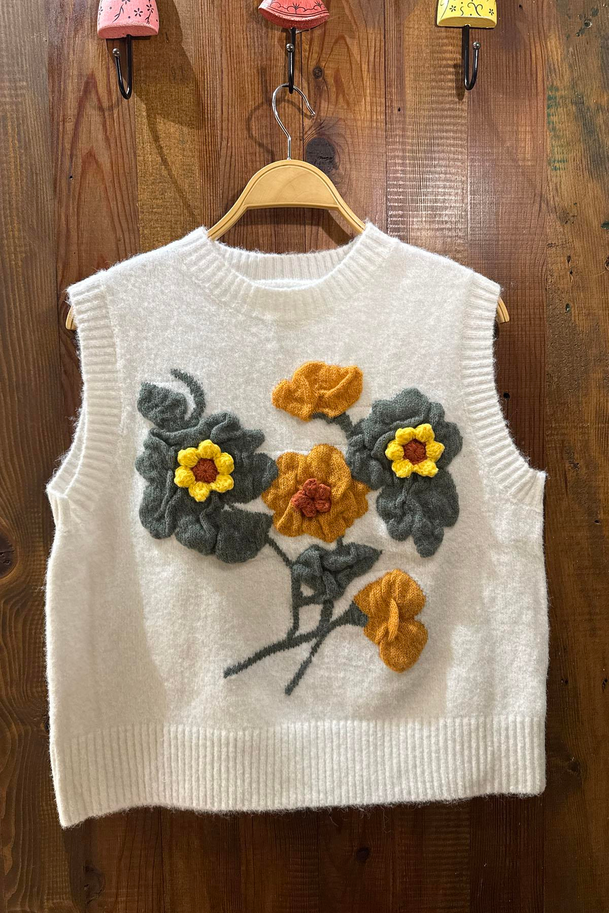 Beyaz Çiçek Kabartmalı Süveter (KB-PM-063-PO-BE-STD)
