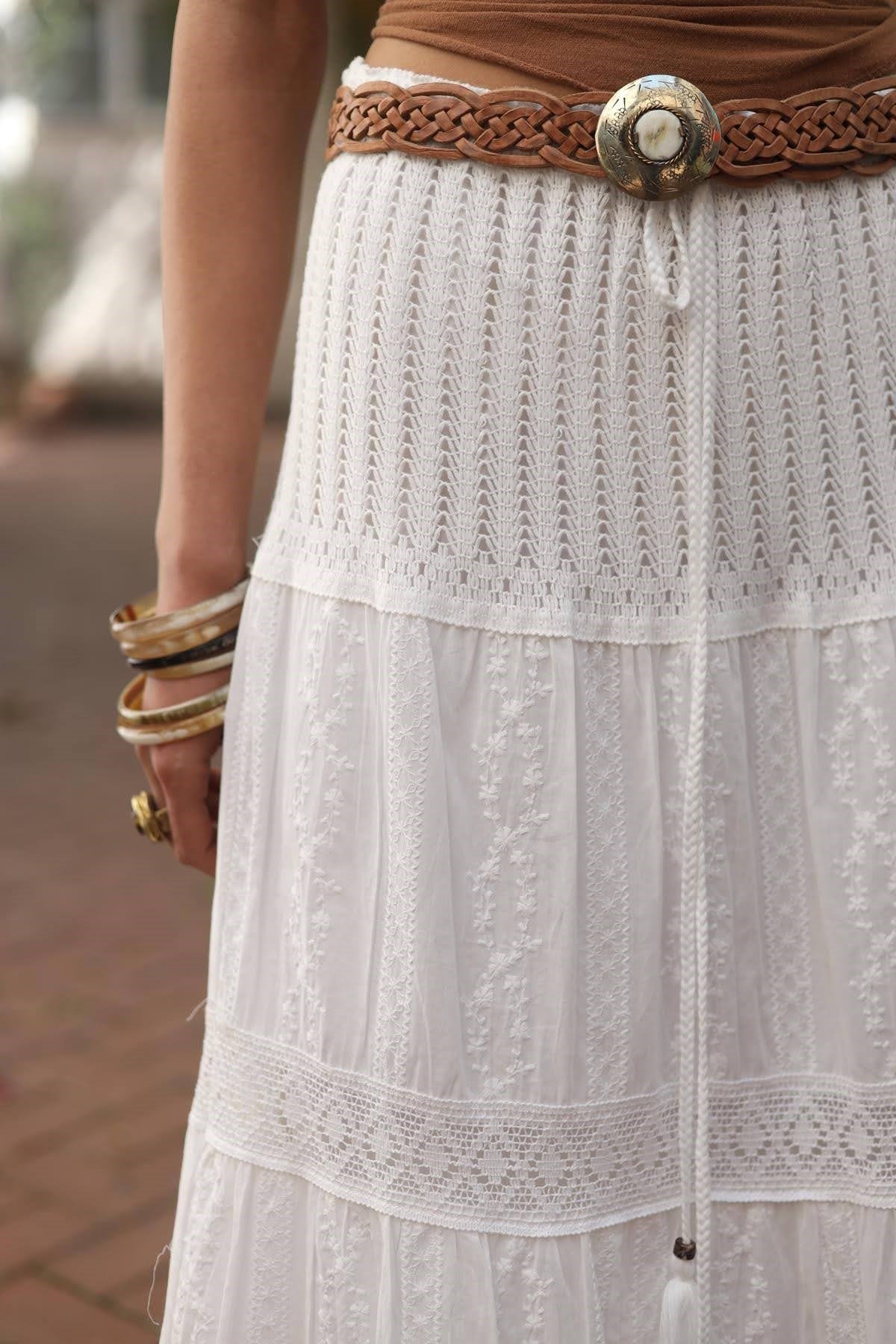 Beyaz Dantel Detaylı Nakışlı Otantik Etek