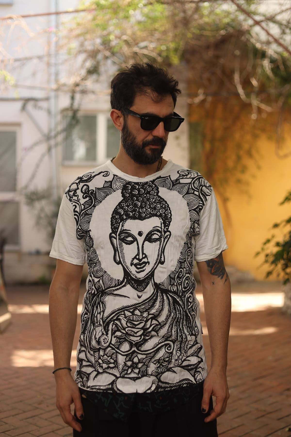 Beyaz Etnik Desenli Erkek Tişört (ETS-TS-001-PA-BE-STD)