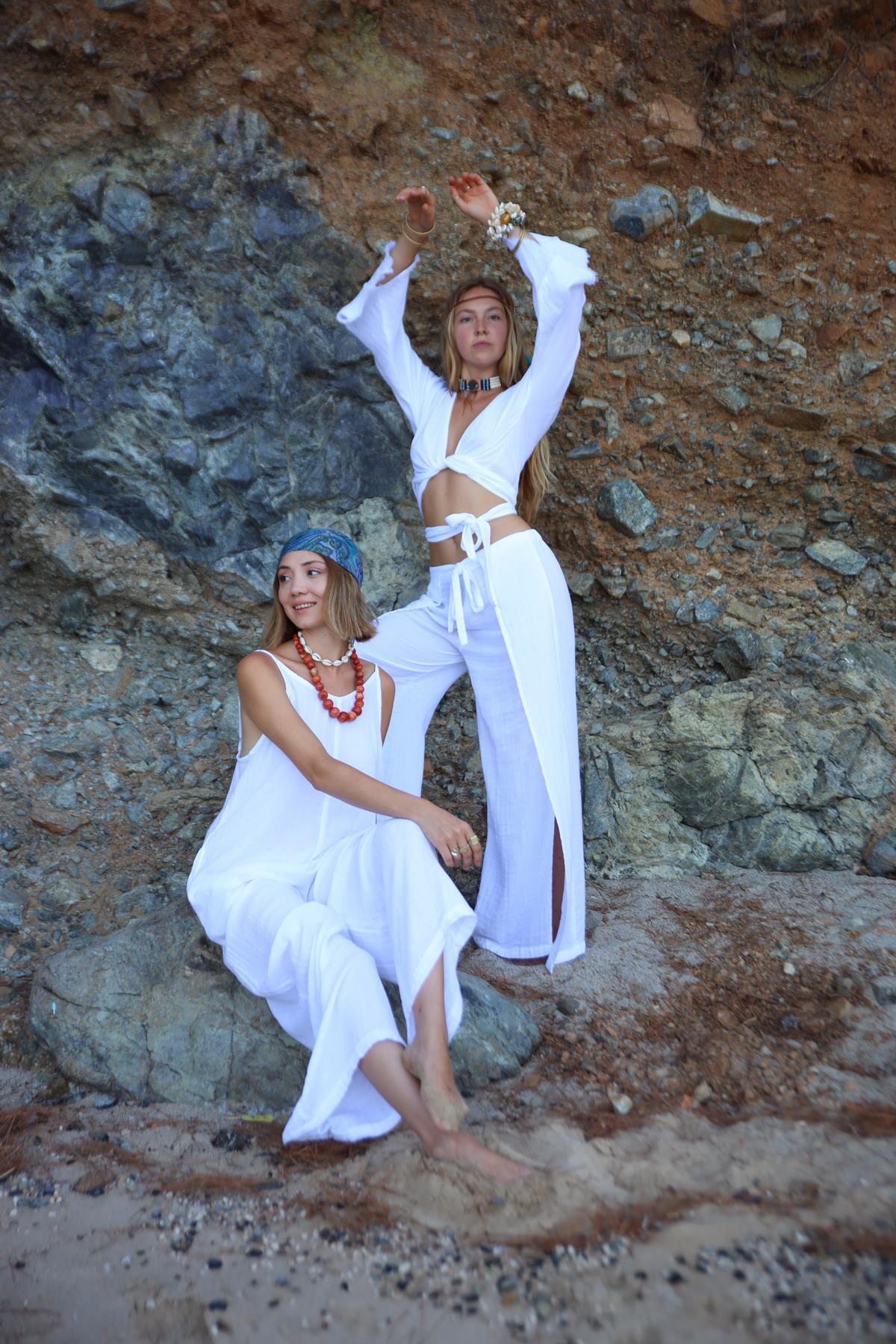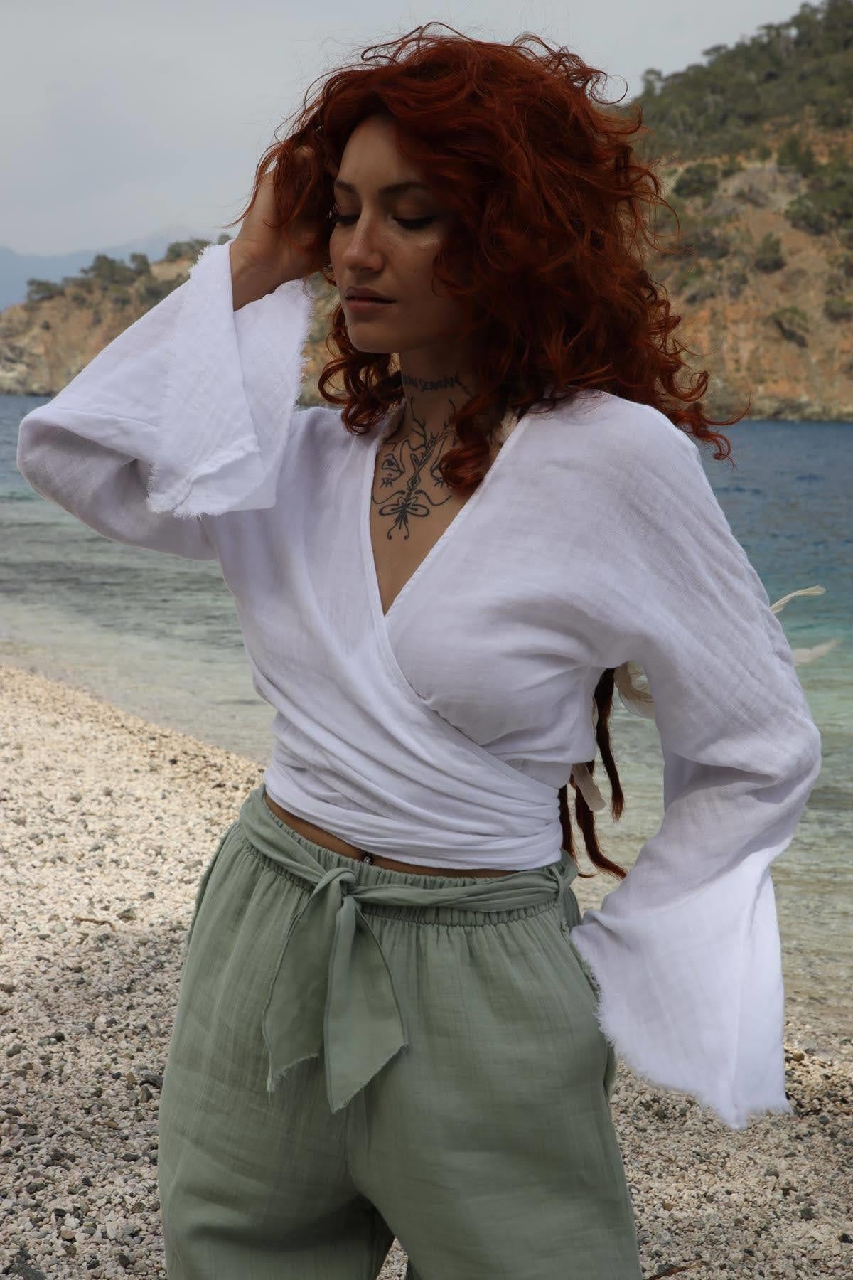 Beyaz İspanyol Kol Anvelop Crop Bluz - Şaman Butik Beyaz İspanyol Kol Anvelop Crop Bluz