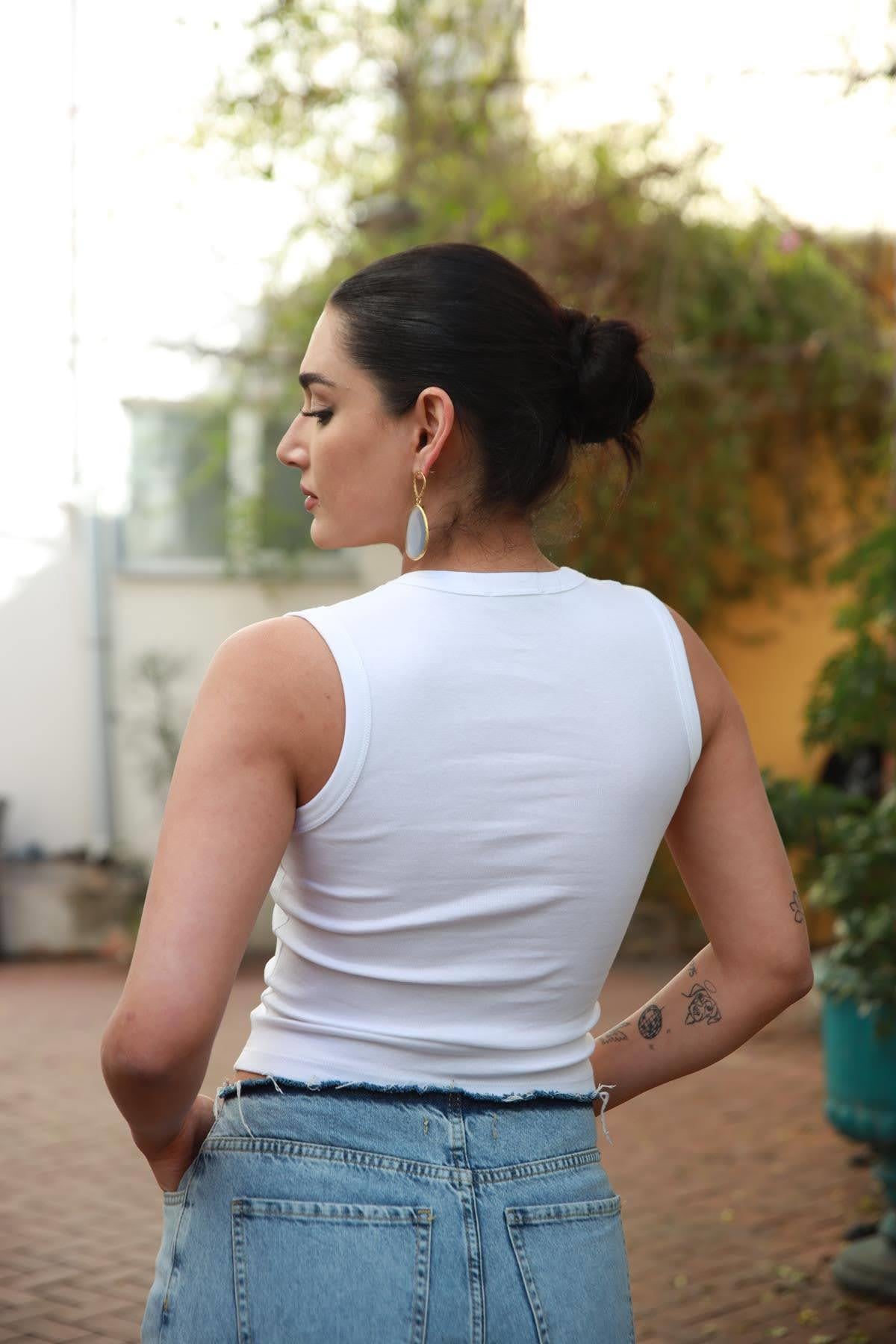 Beyaz V Yaka Kalın Askılı Atlet