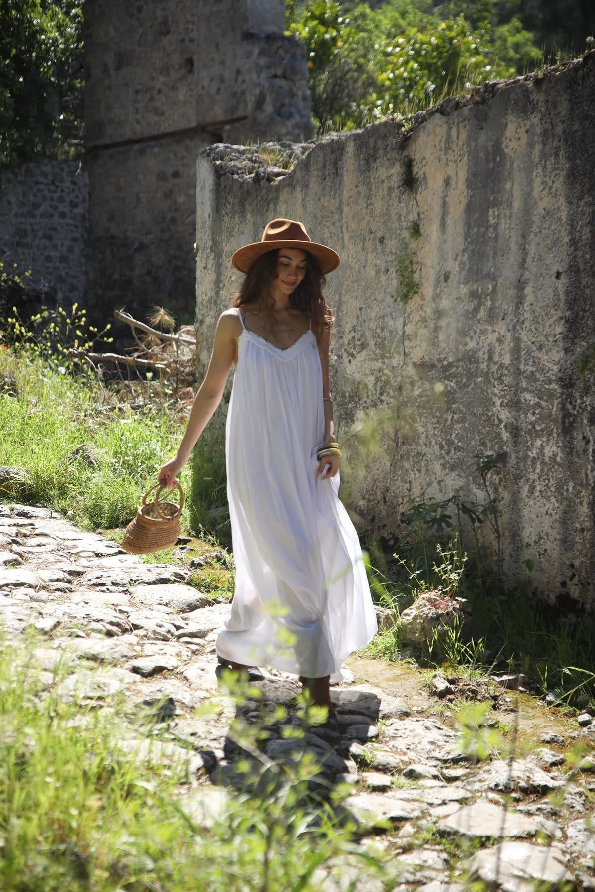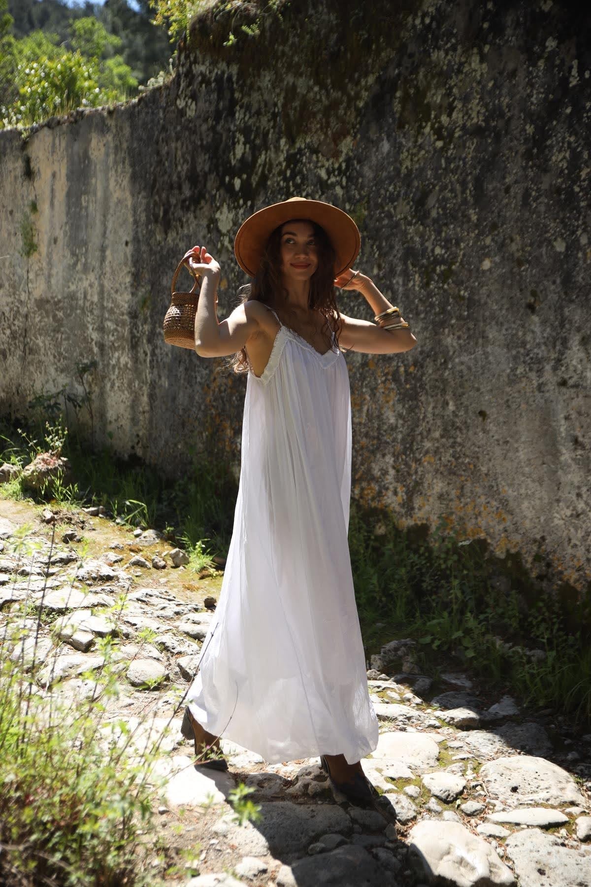 Beyaz Yakası Parça Detaylı İnce Askılı Elbise (KE-SIT-030-PA-BE-STD)