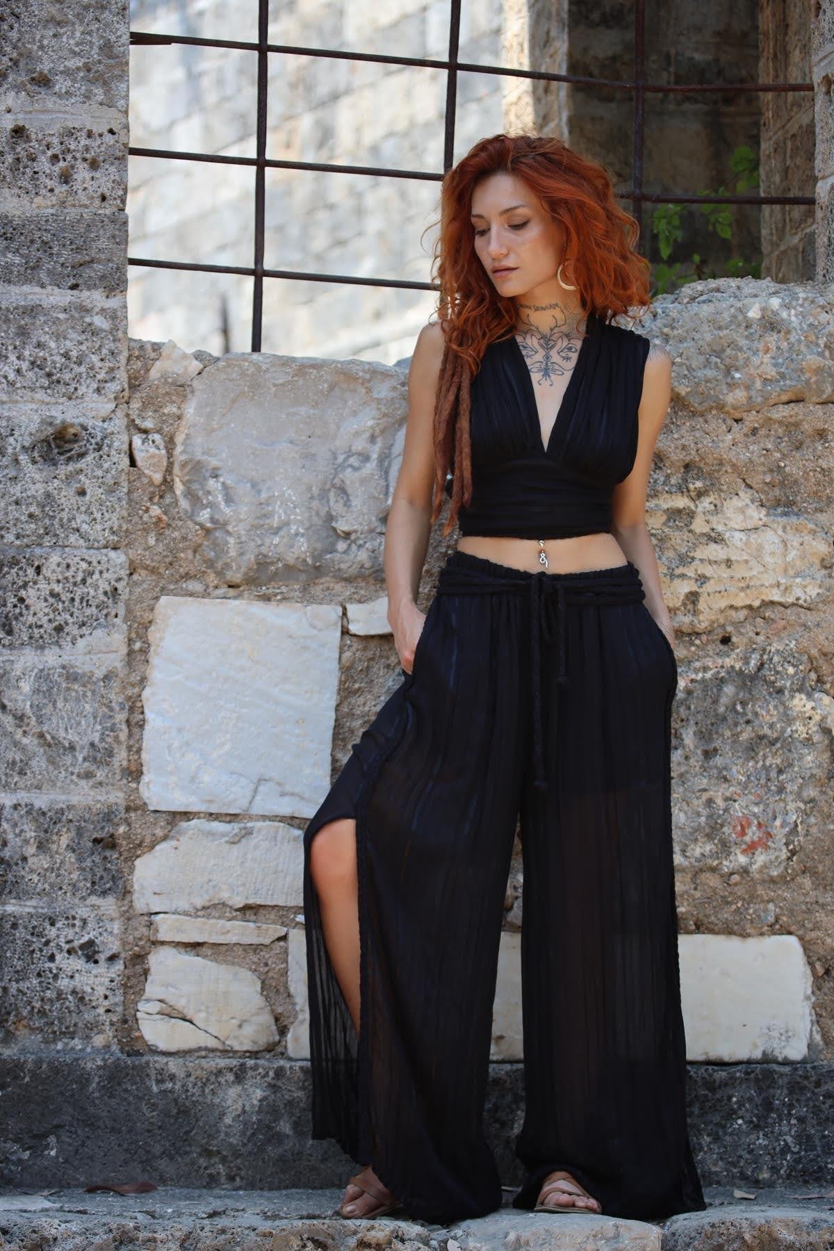 Black Knitted Blouse and Pants Set (KTKM-RR-004-VI-SI-STD)