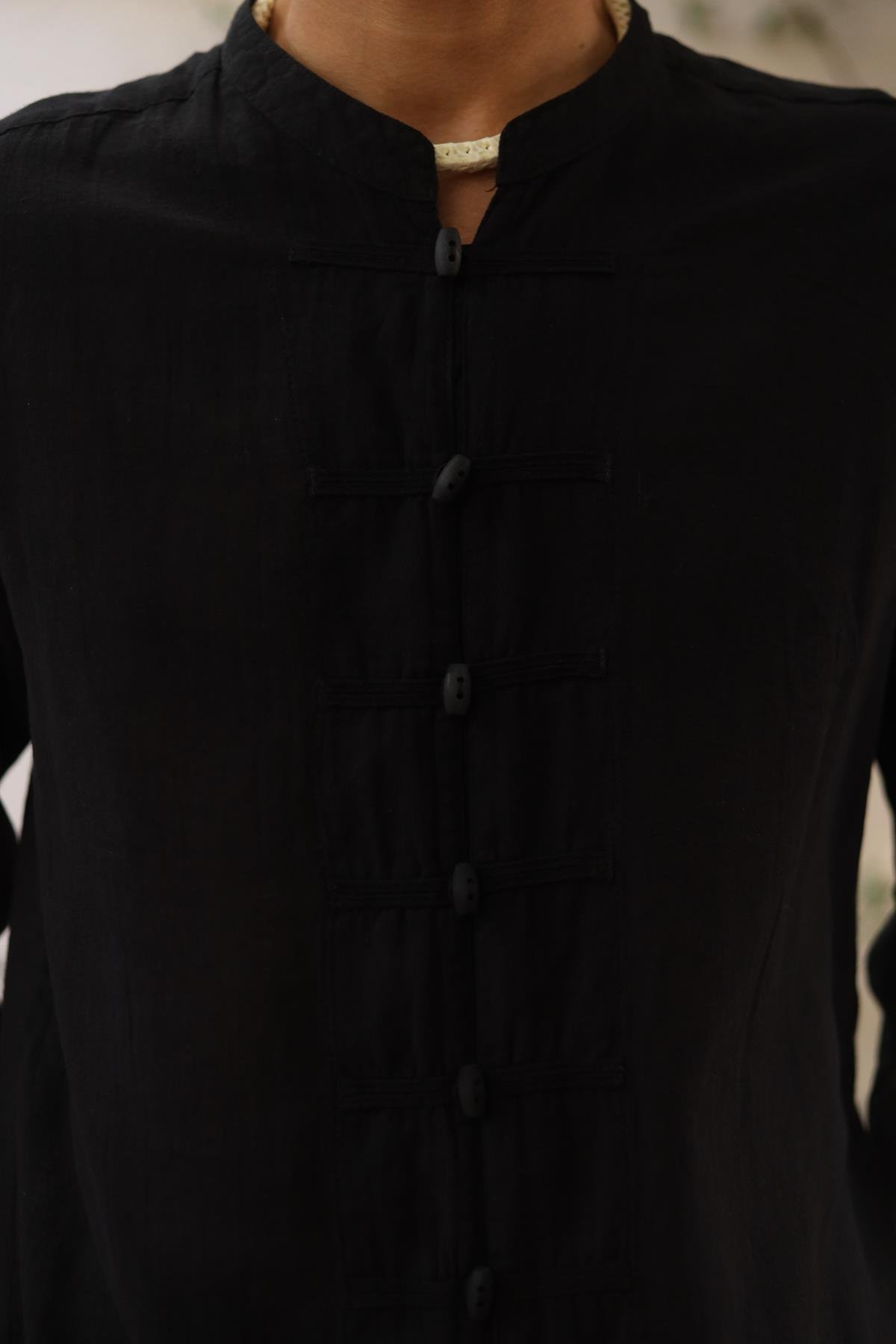 Black Mandarin Collar Men's Shirt
