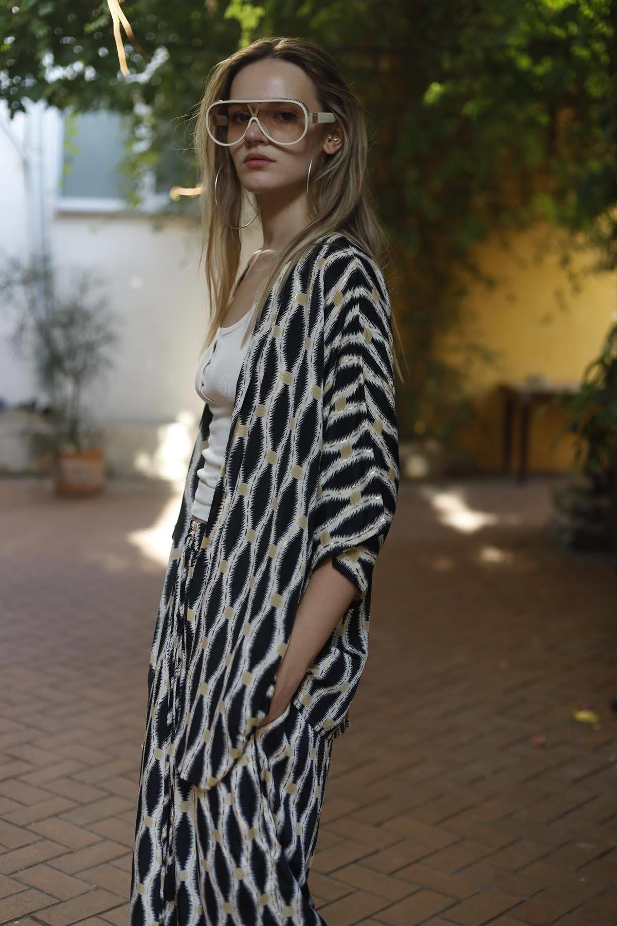 Black Patterned Short Caftan (KKFN-RMR-006-IP-SI2-STD)