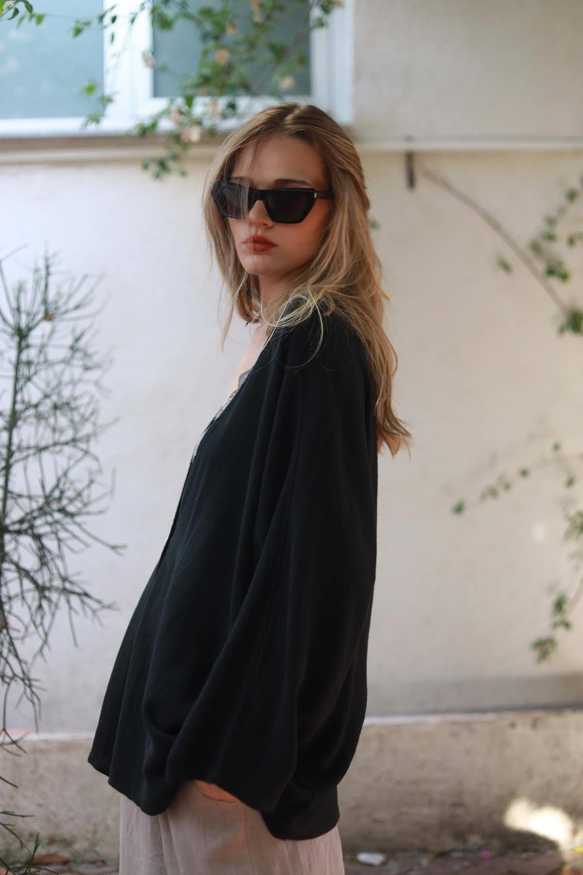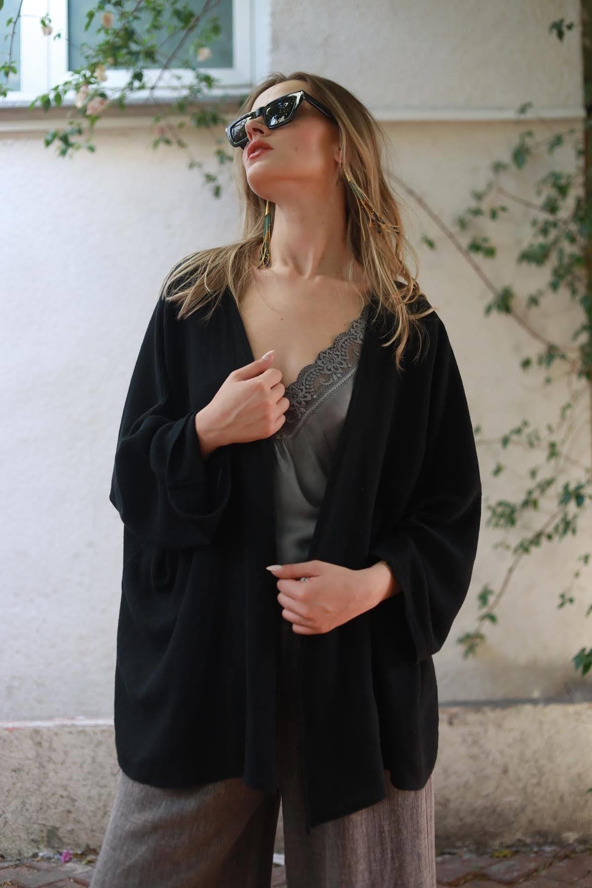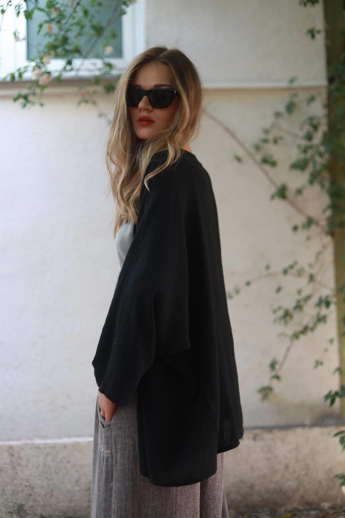Black Single Button Linen Cardigan (KH-FAL-002-KTN-SI-STD)