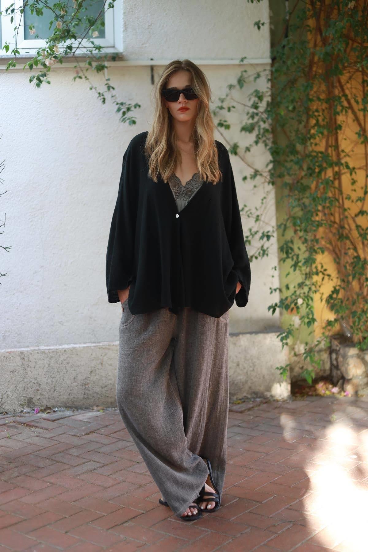 Black Single Button Linen Cardigan