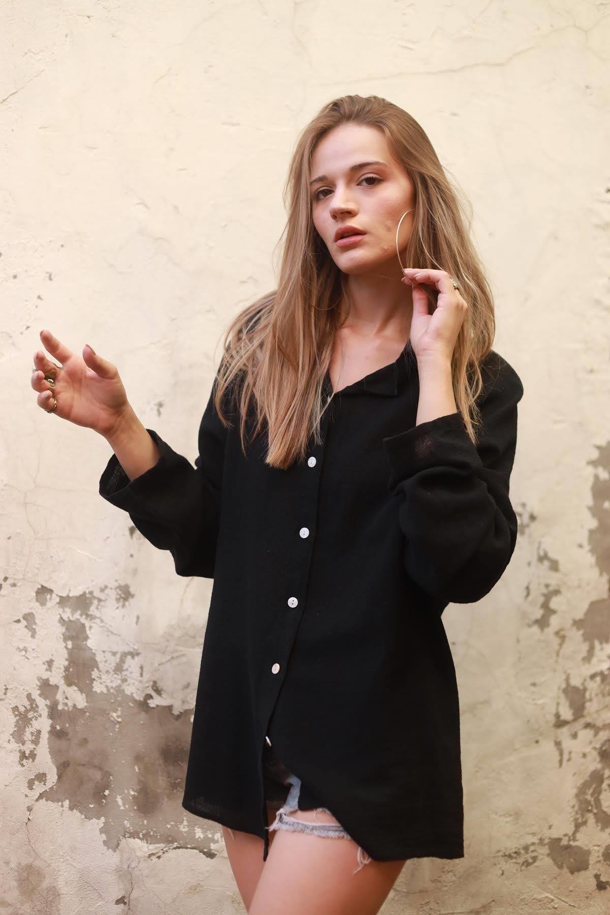 Black Soft Linen Shirt (KG-FAL-007-KTN-SI-STD)