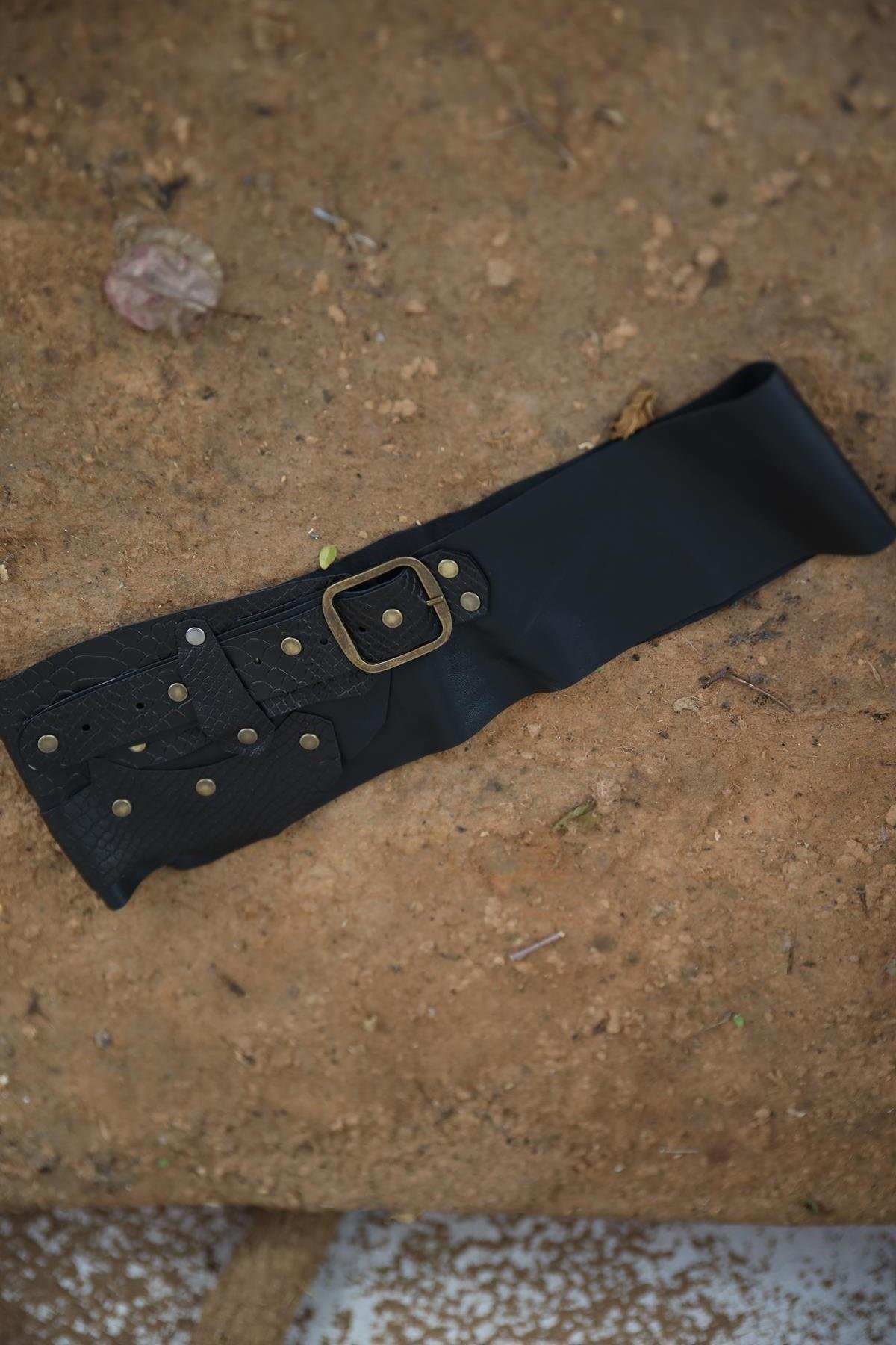 Black Stud Detail Patched Leather Belt (AKE-LAM-002-DE-SI7-STD)