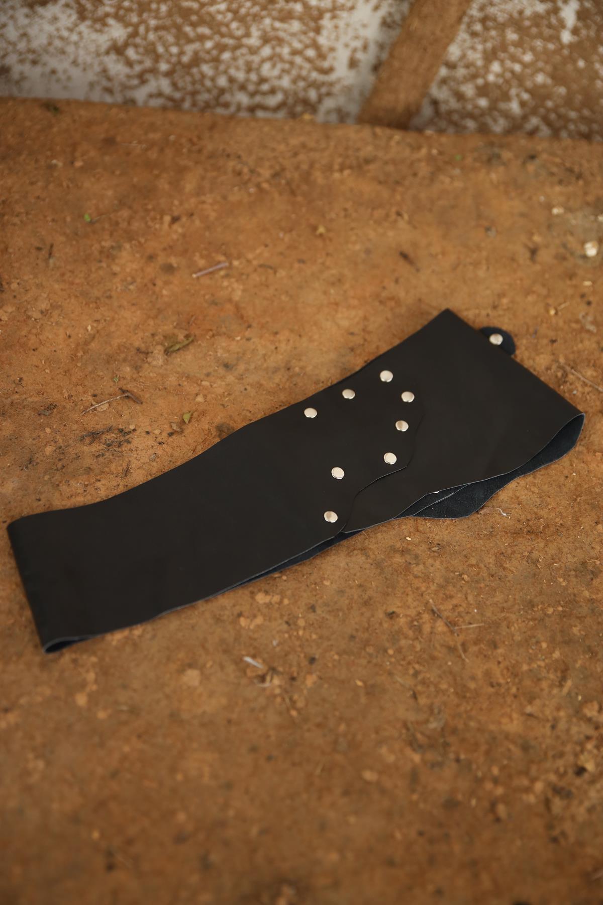 Black Stud Detail Patched Leather Belt (AKE-LAM-002-DE-SI9-STD)