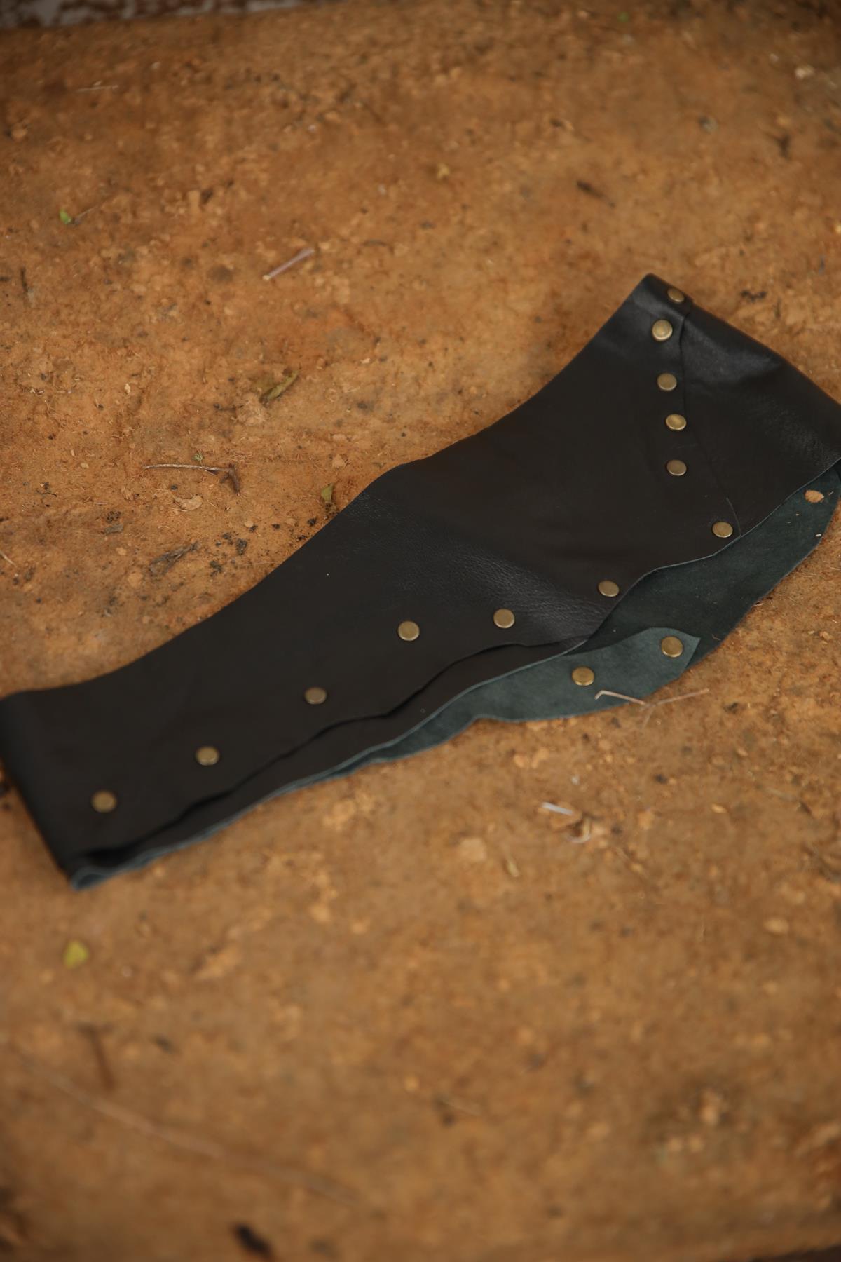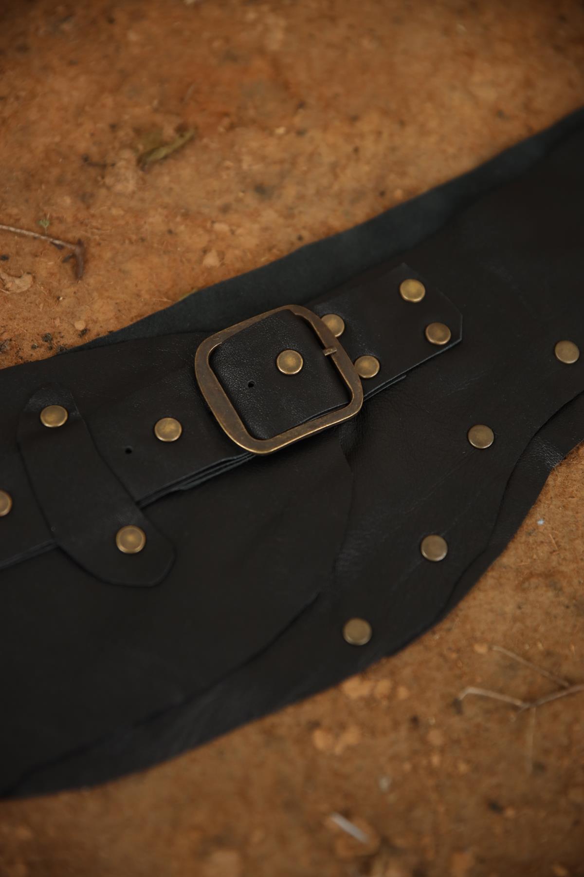 Black Stud Detail Patched Leather Belt (AKE-LAM-002-DE-SI5-STD)