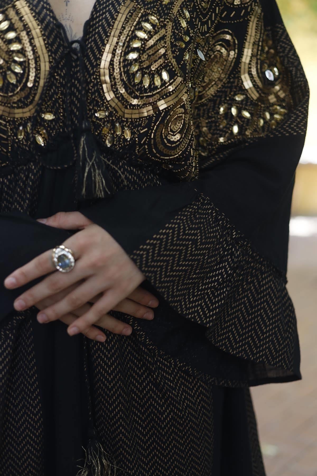 Black V Neck Stone and Sequined Authentic Dress (KE-AS-067-PA-SI-STD)