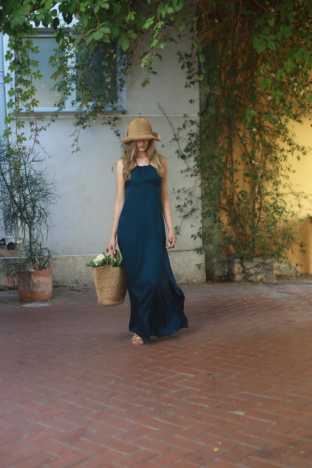Blue Halter Neck Slit Dress
