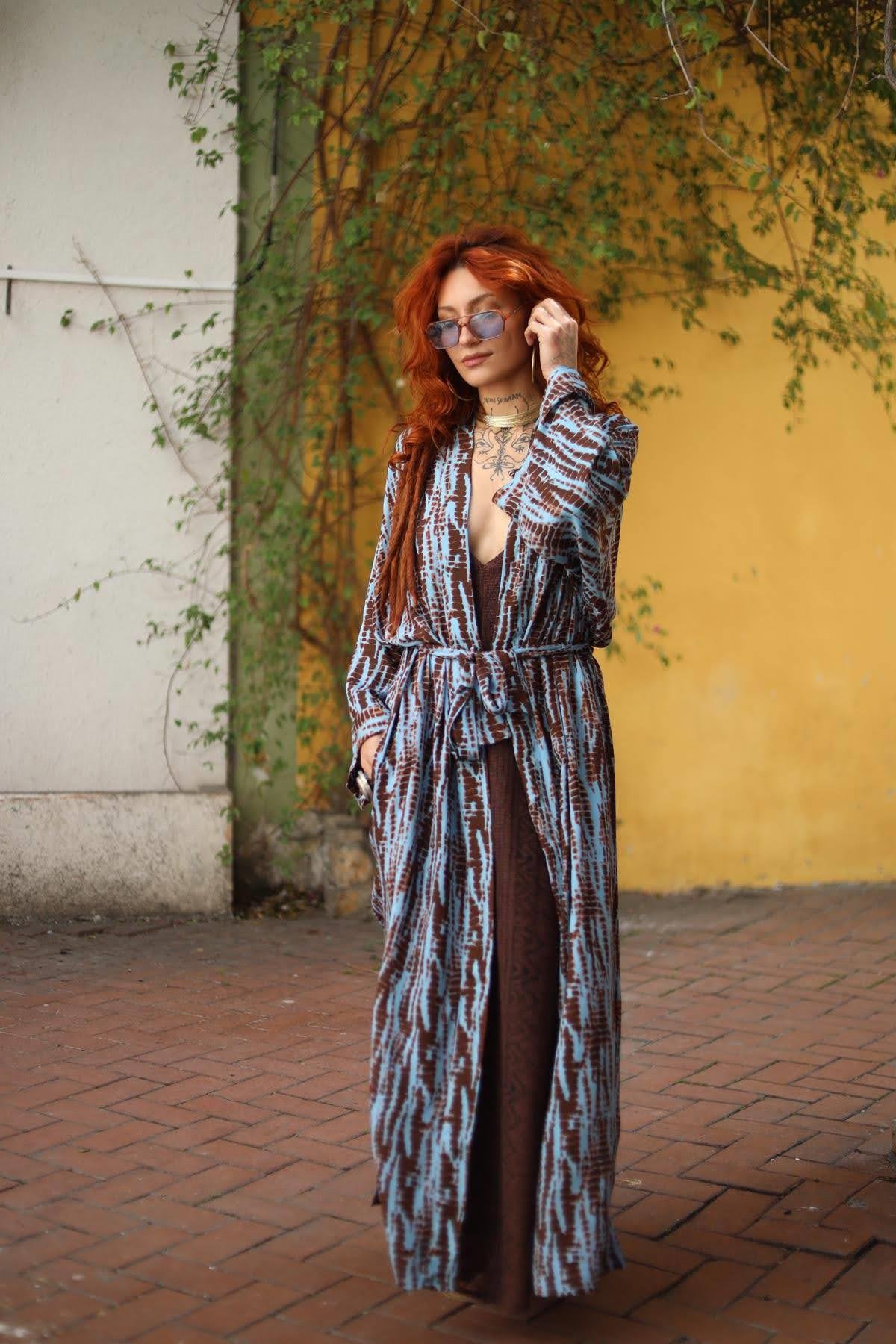 Blue Patterned Pocket Caftan