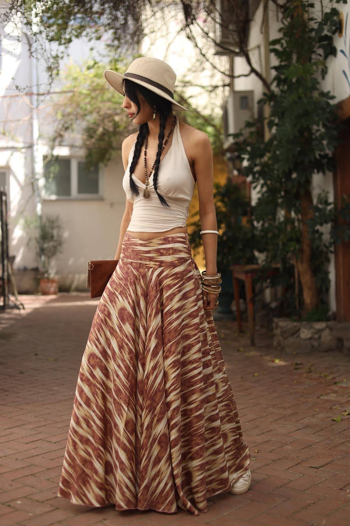 Bordo Desenli İpek Pantolon Etek