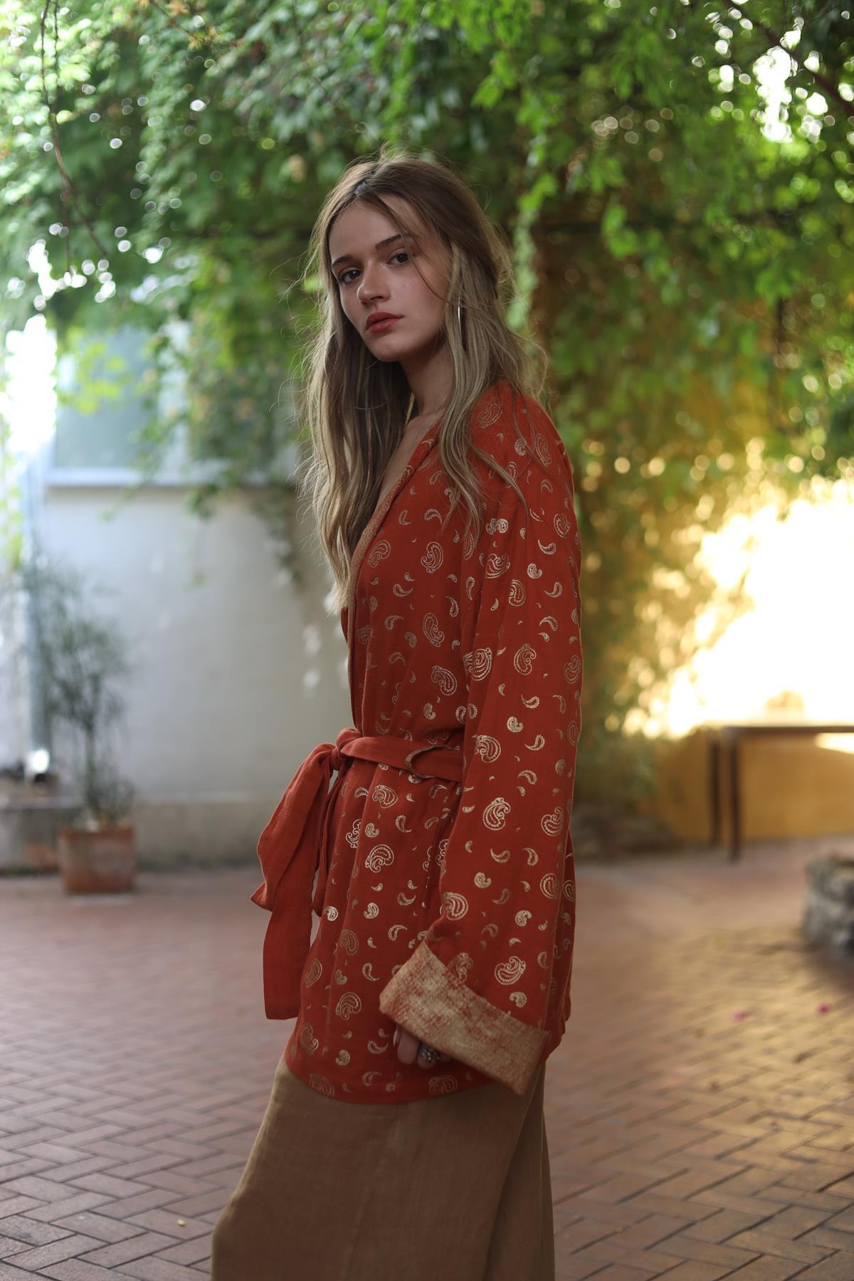 Brick Red Gold Embroidered Bohemian Caftan (KKFN-LM-PA-KK-STD-001)