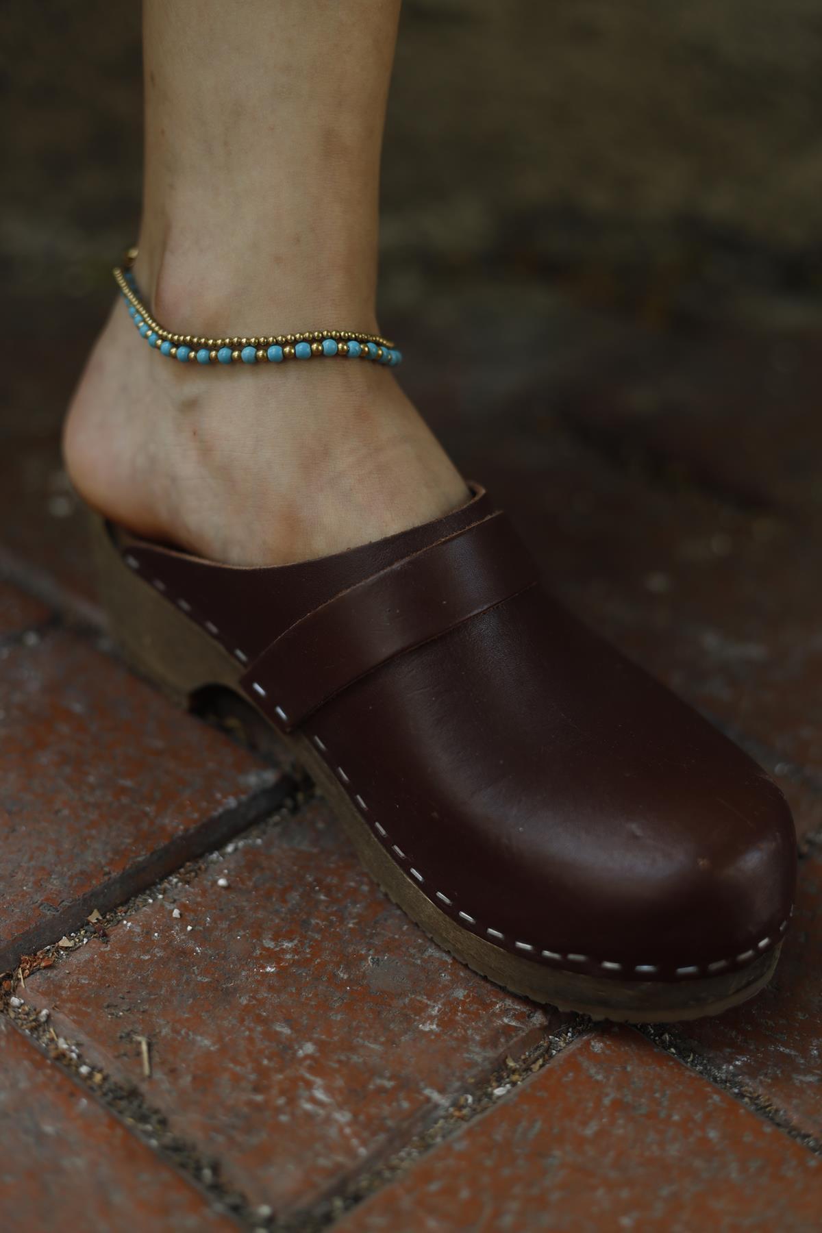 Bronz Tasarım Çift Sıralı Turkuaz Taşlı Halhal (TA-HAL-0133)