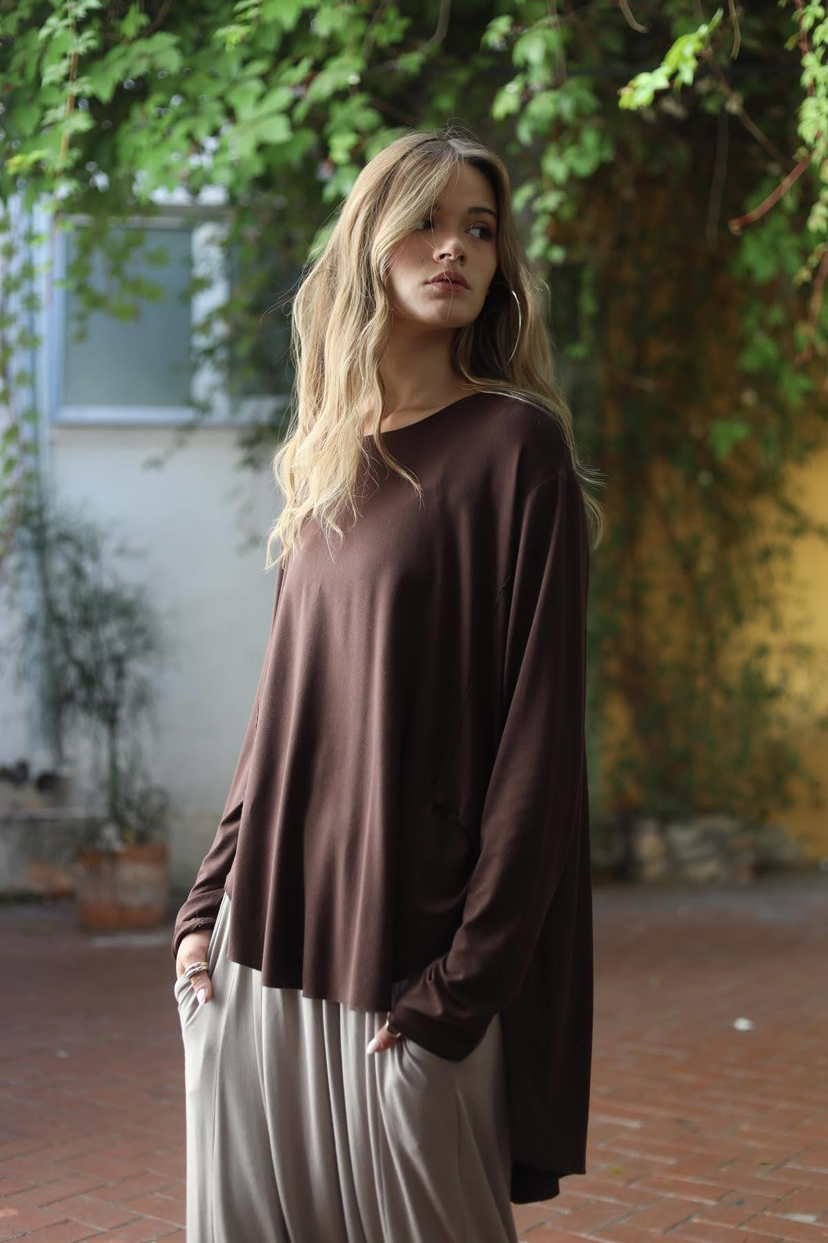 Kahverengi Bisiklet Yaka Dikiş Detaylı Önü Kısa Tunik