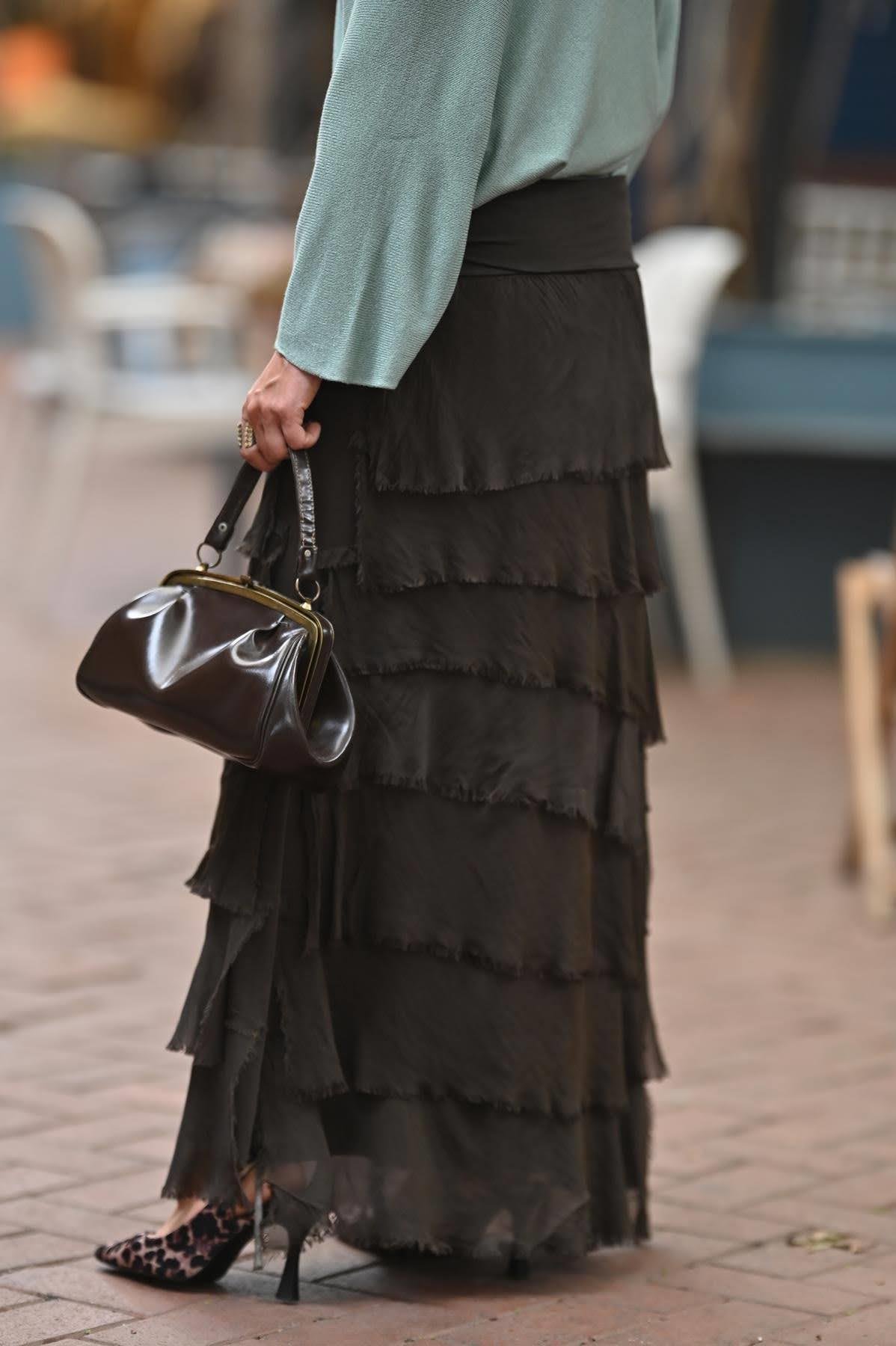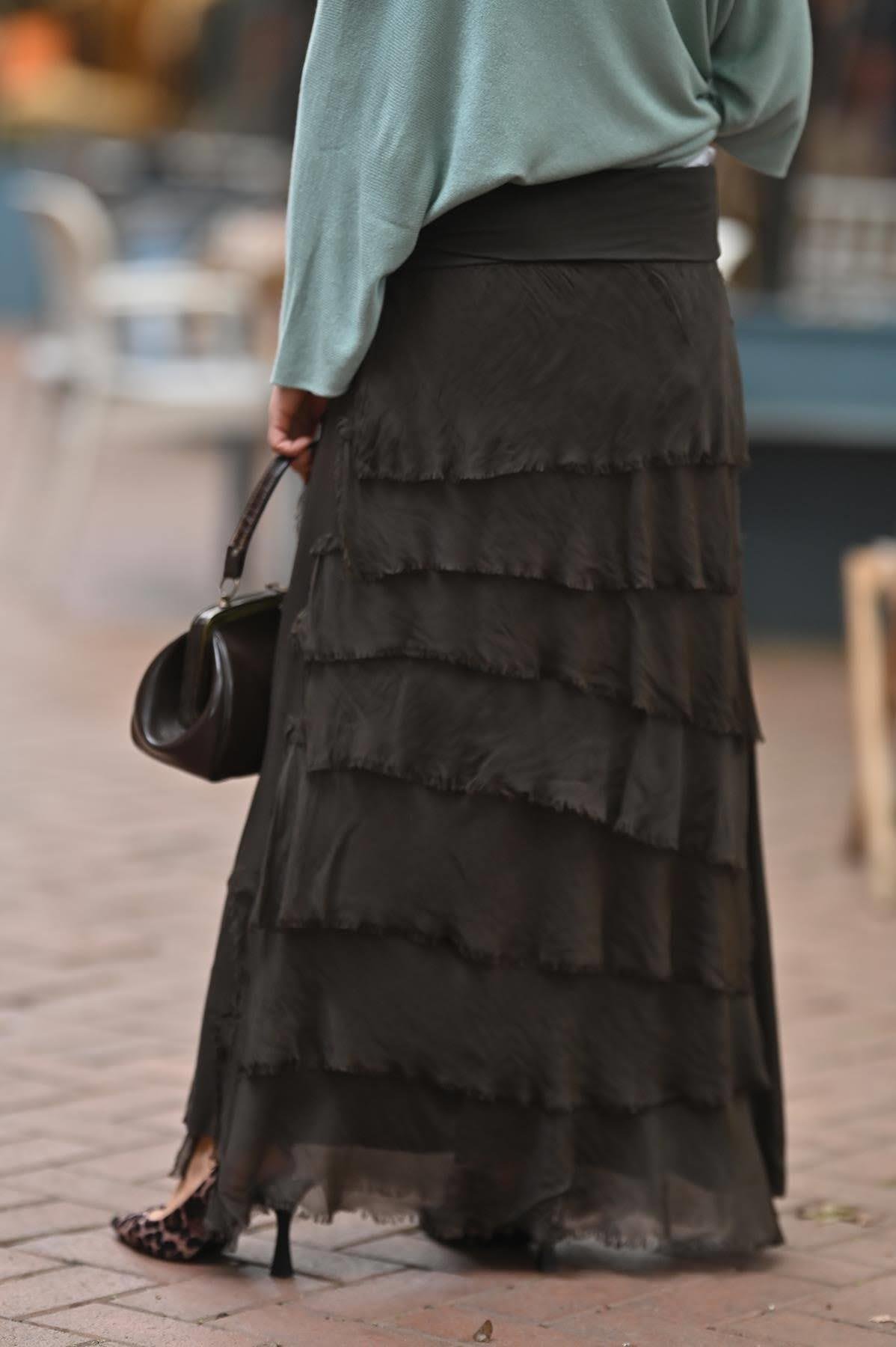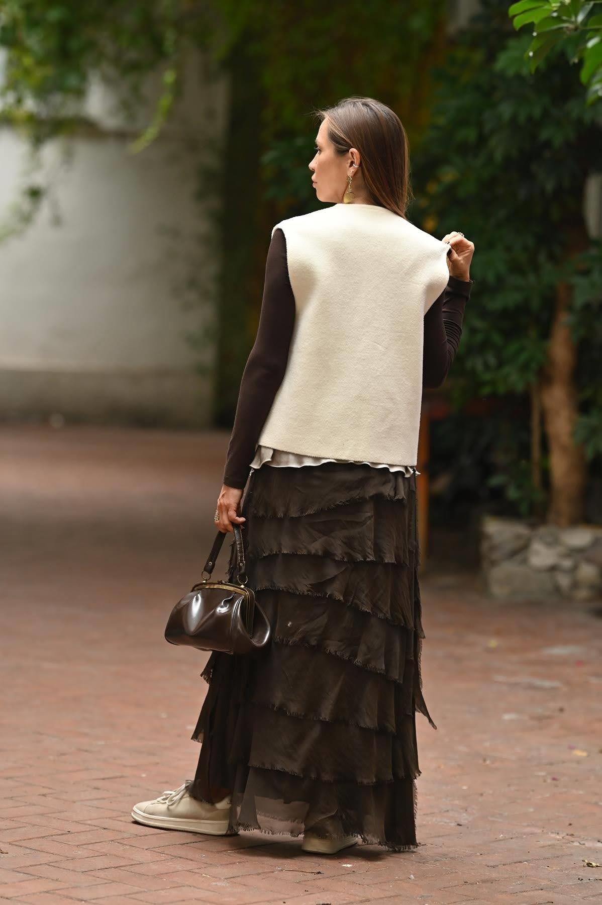 Brown Layered Silk Skirt
