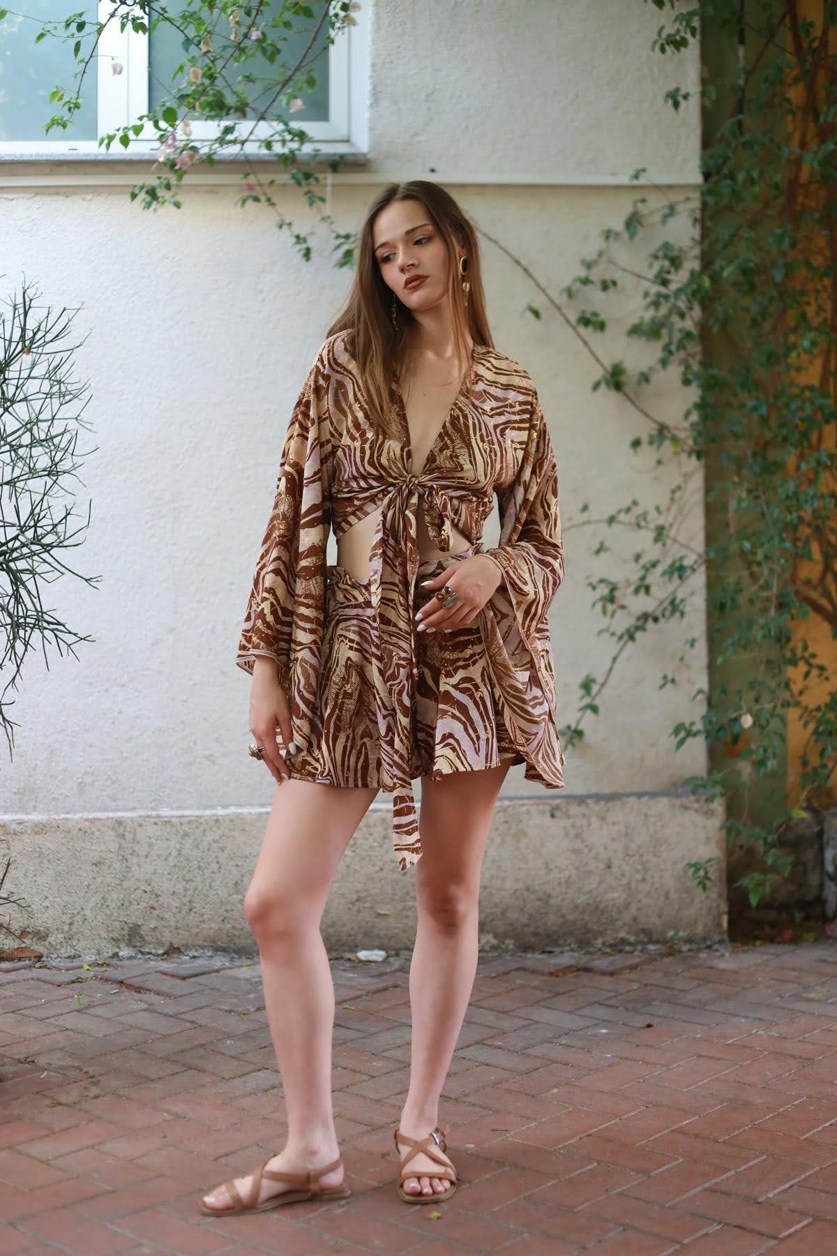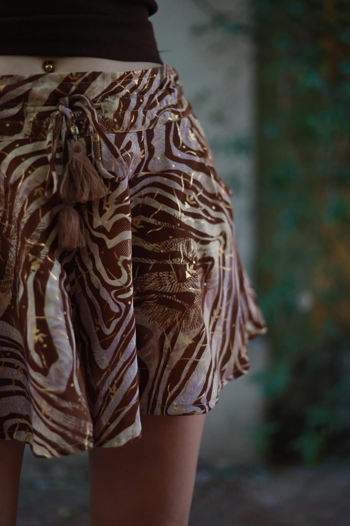 Brown Patterned Silk Short Skirt (KET-RMR-010-IP-KA-STD)