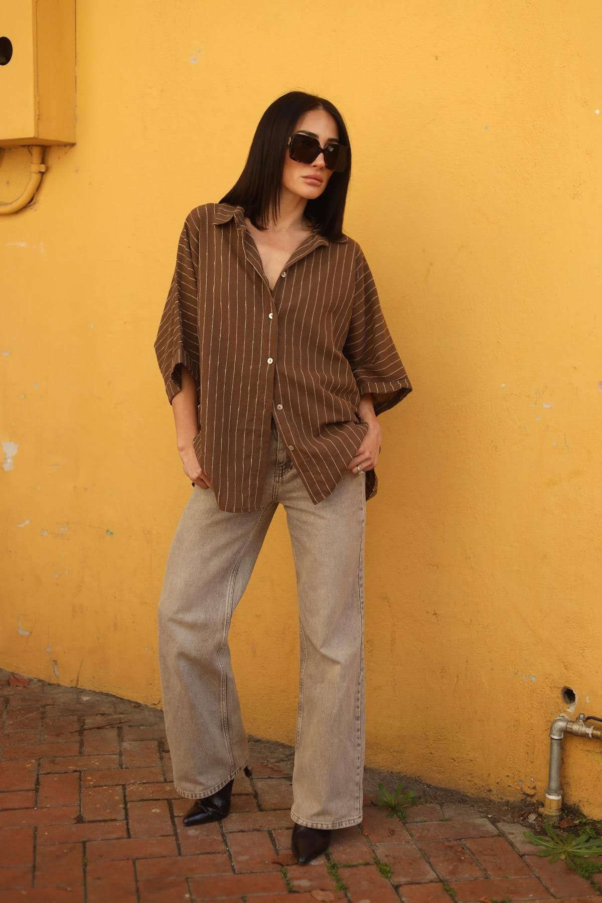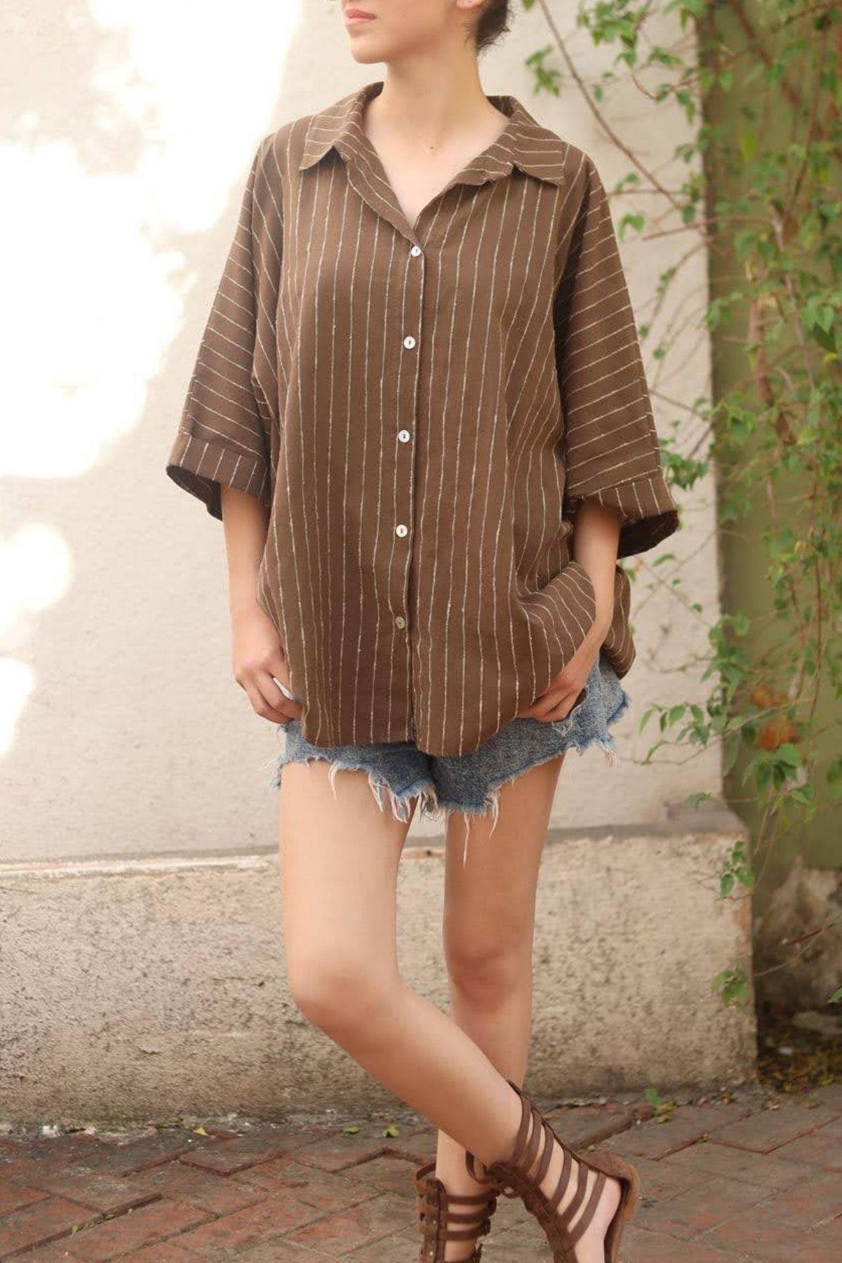 Brown Striped Linen Shirt