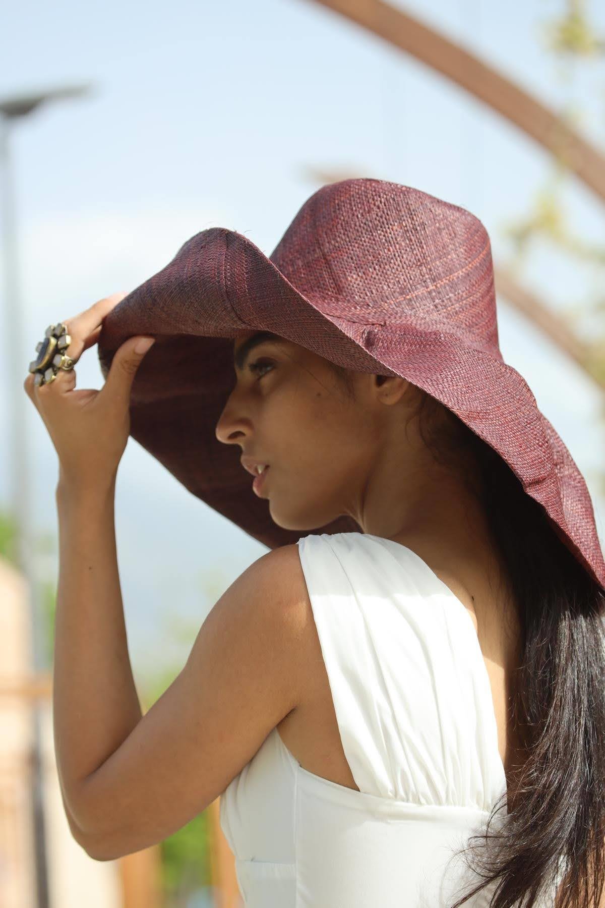 Burgundy Color Raffia Hat (ASPK-IZ-001-PA-BO-STD)