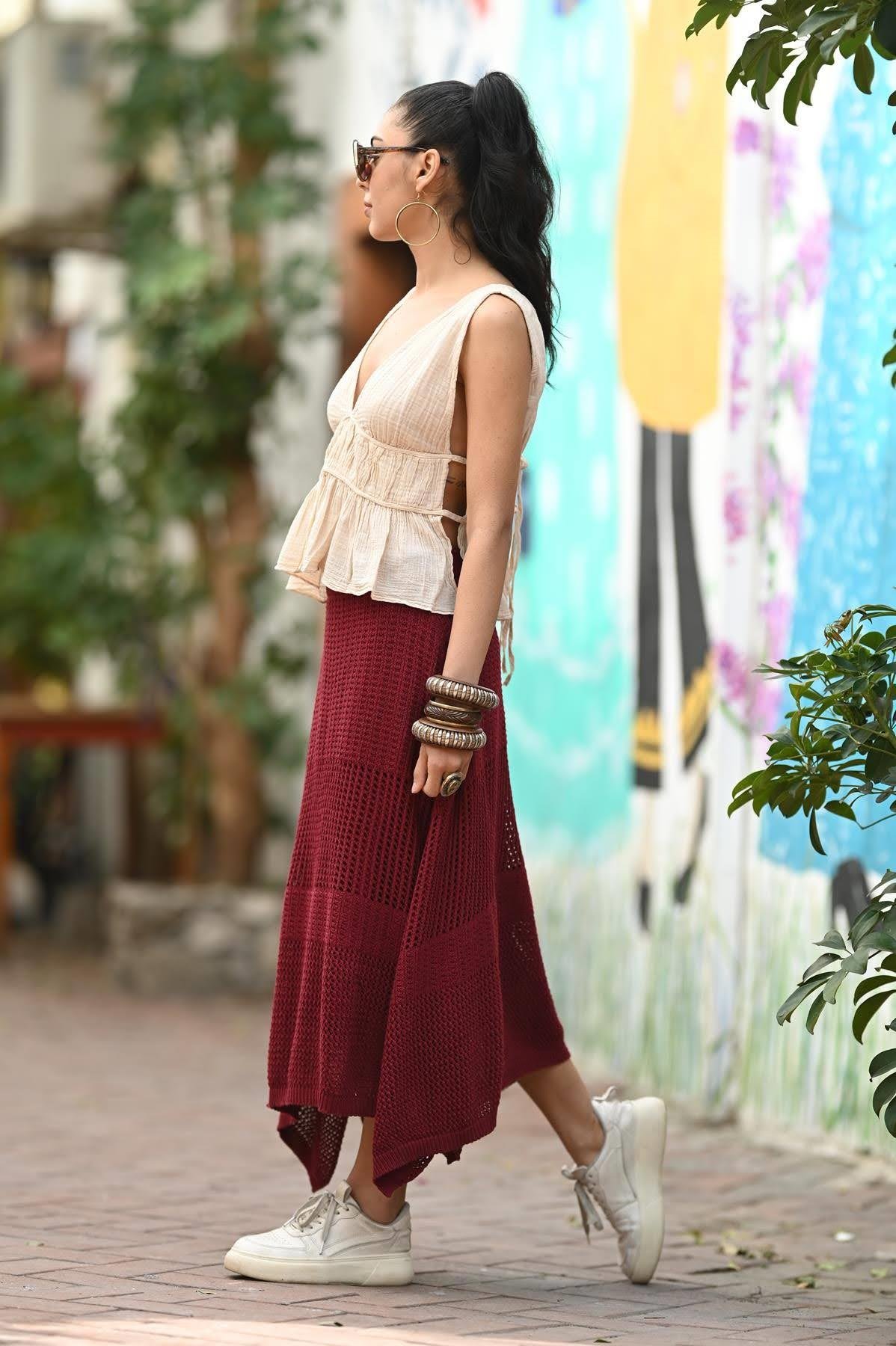 Burgundy Knit Skirt with Interlining (KET-ESQ-001-PA-BO-S)