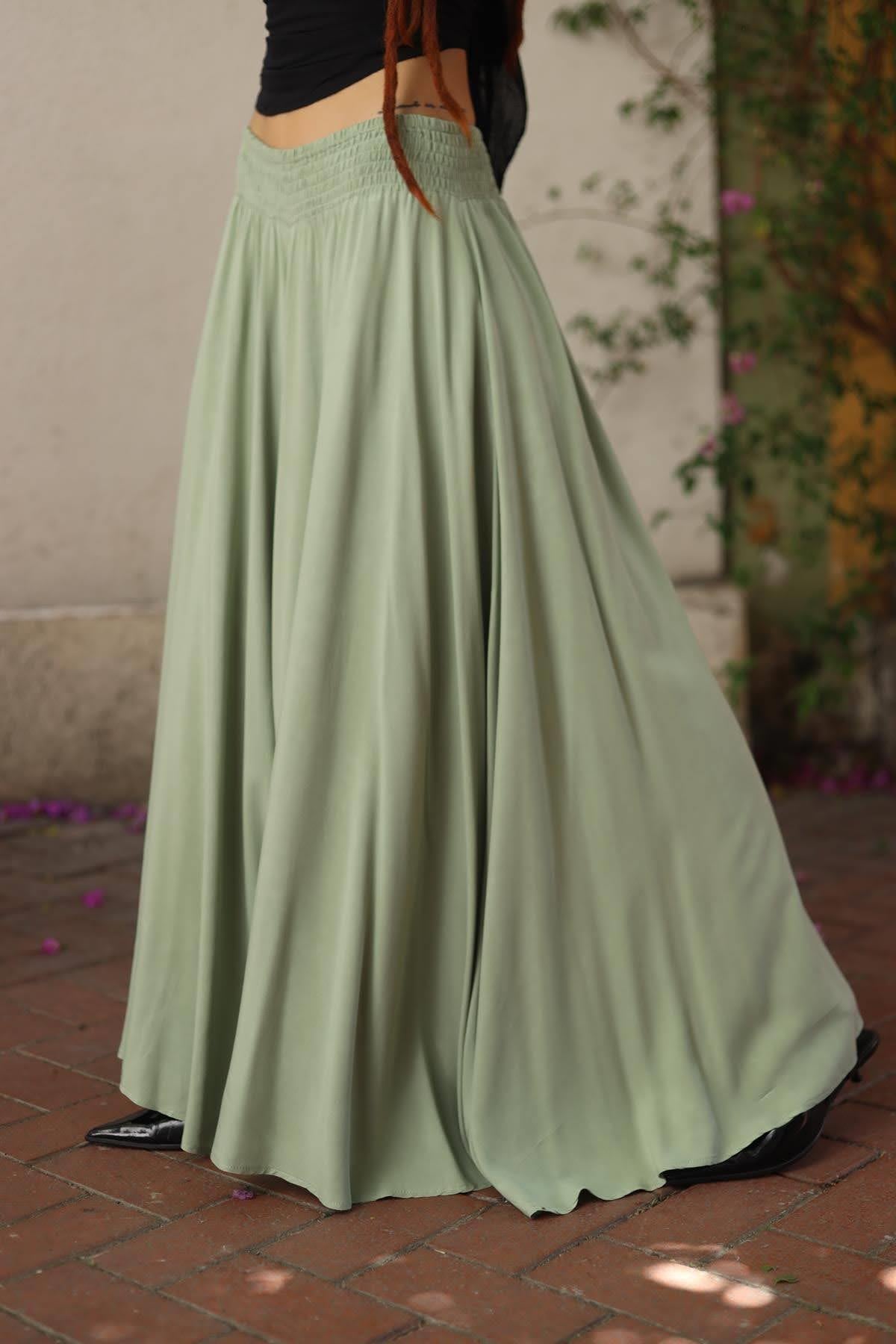 Çağla Yeşili Beli Gipeli Bol Paça Salaş Pantolon