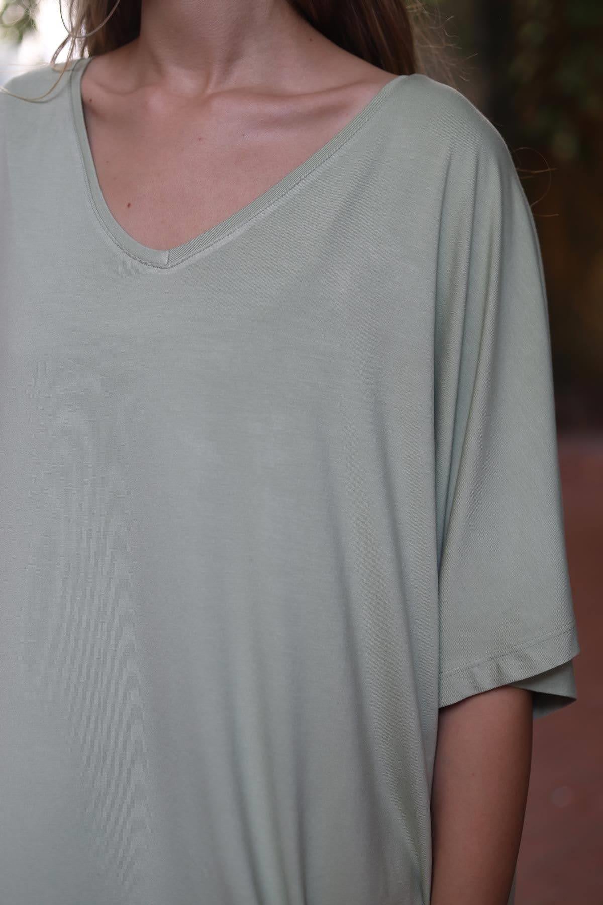 Çağla Yeşili V Yaka Yarasa Kol Bluz (KB-LAM-011-VI-CAG-STD)