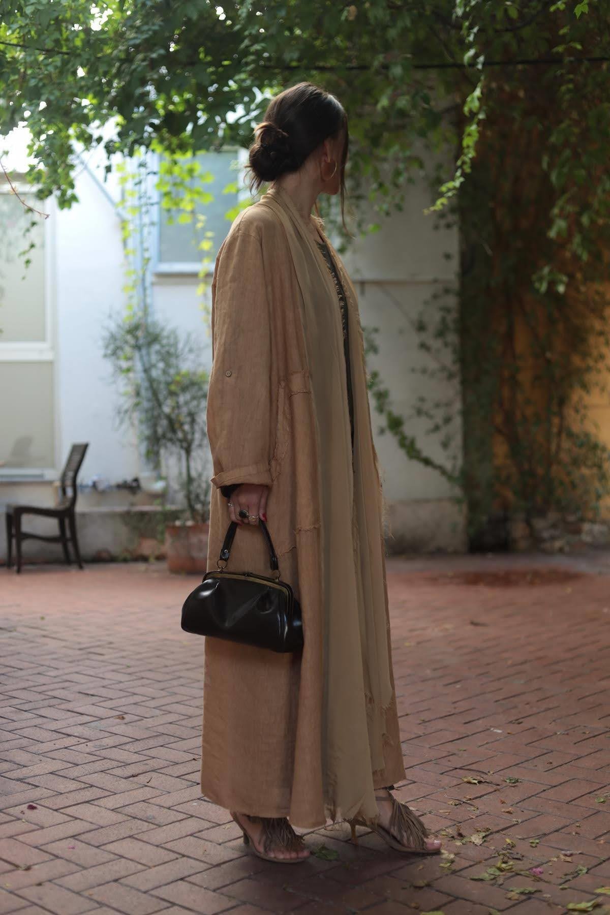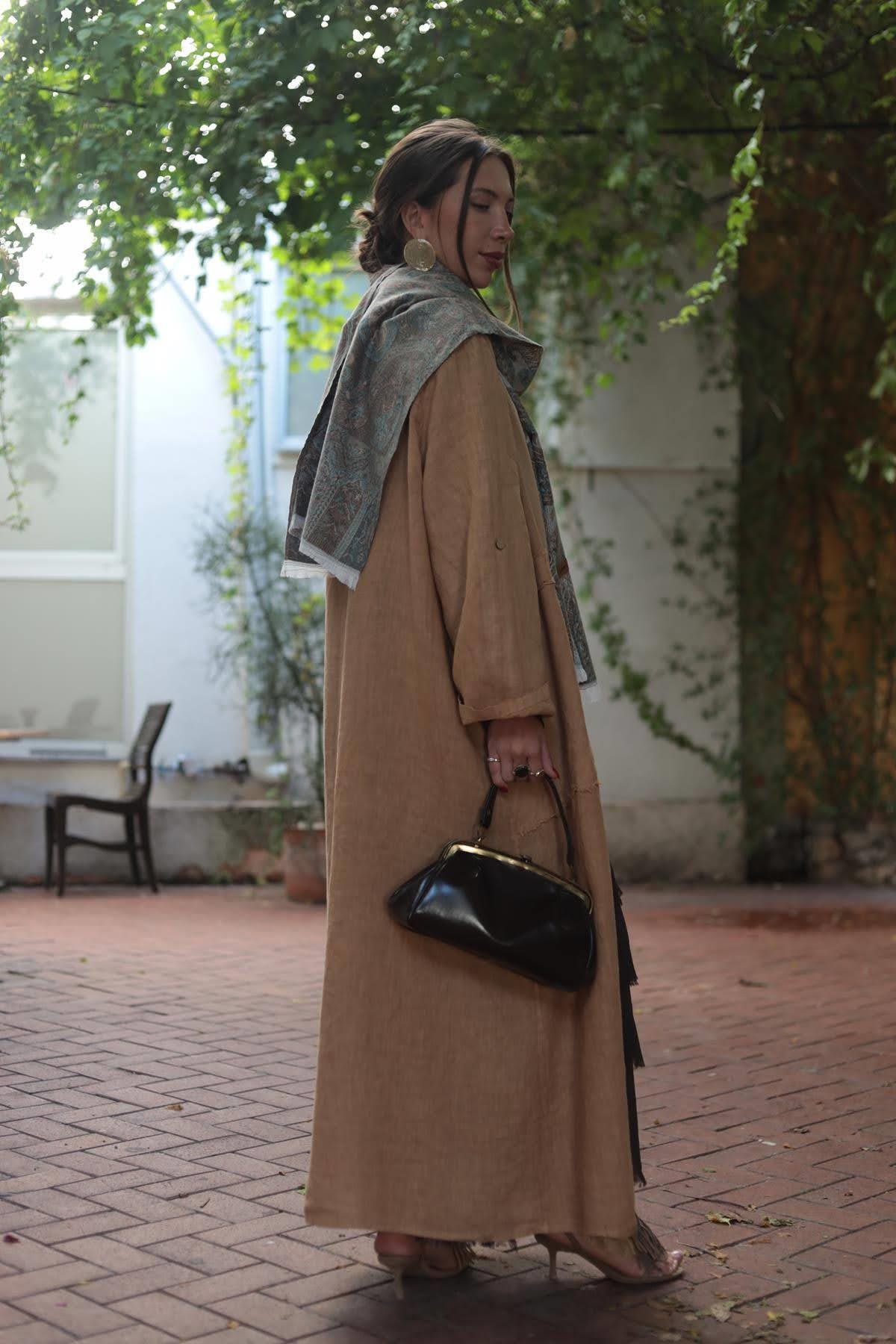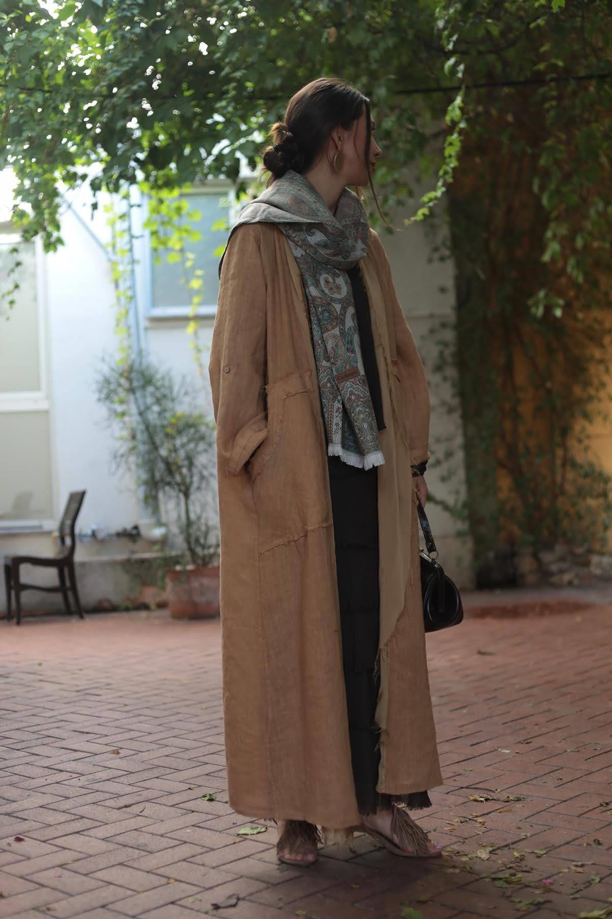 Camel Color Fringed Linen Caftan