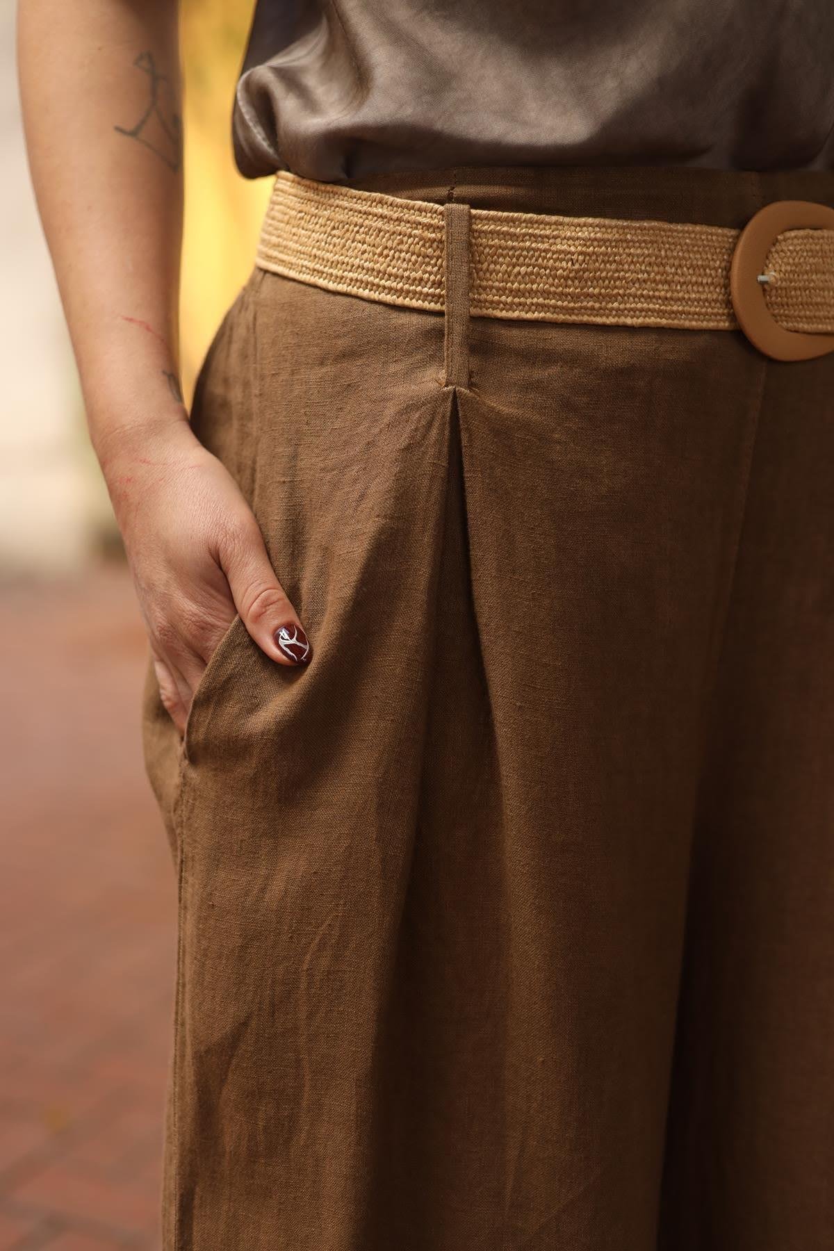 Camel Color Linen Palazzo Pants