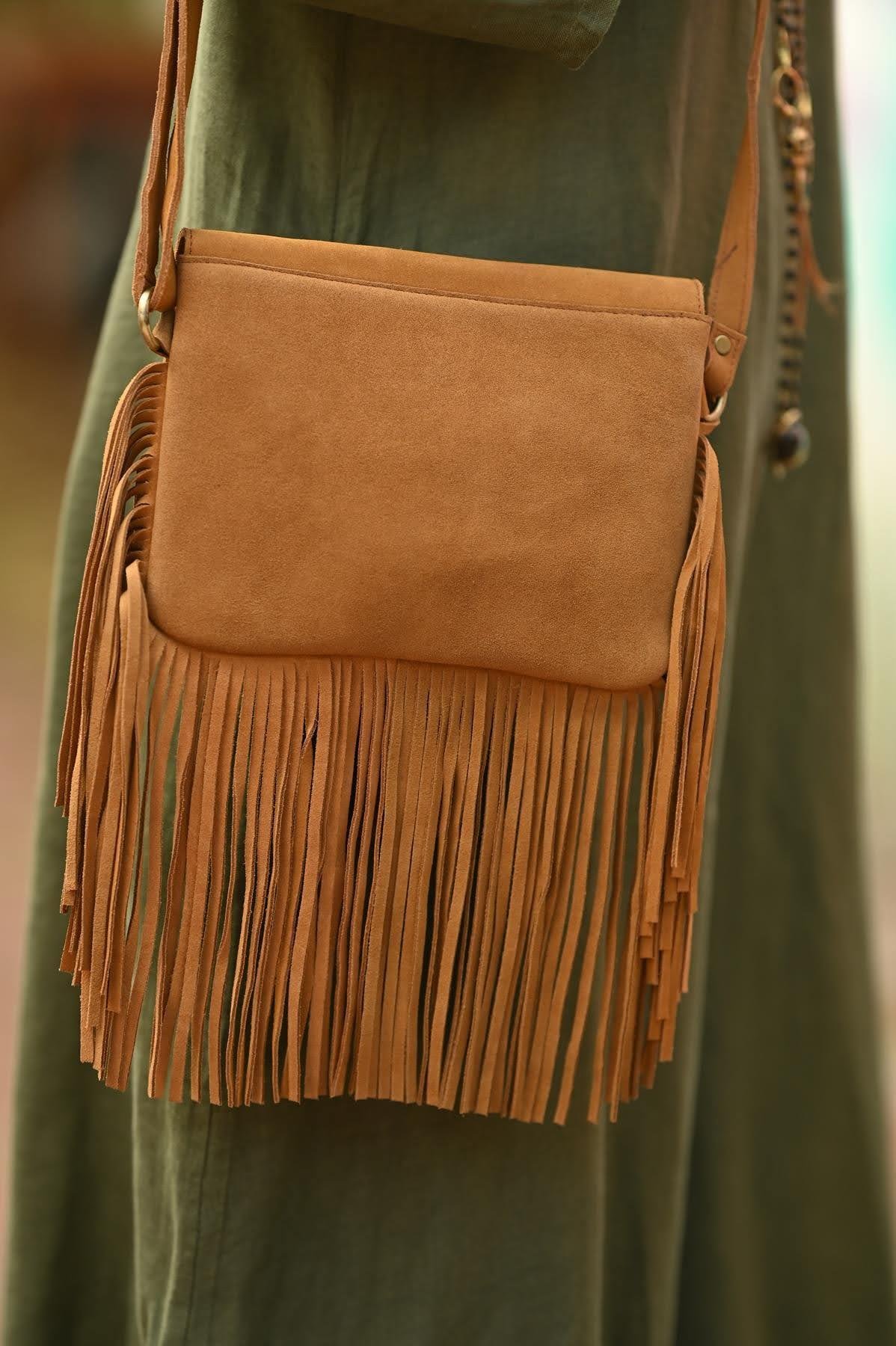 Camel Color Tasseled Suede Leather Bag (ACNT-AS-032-DE-CA-STD)