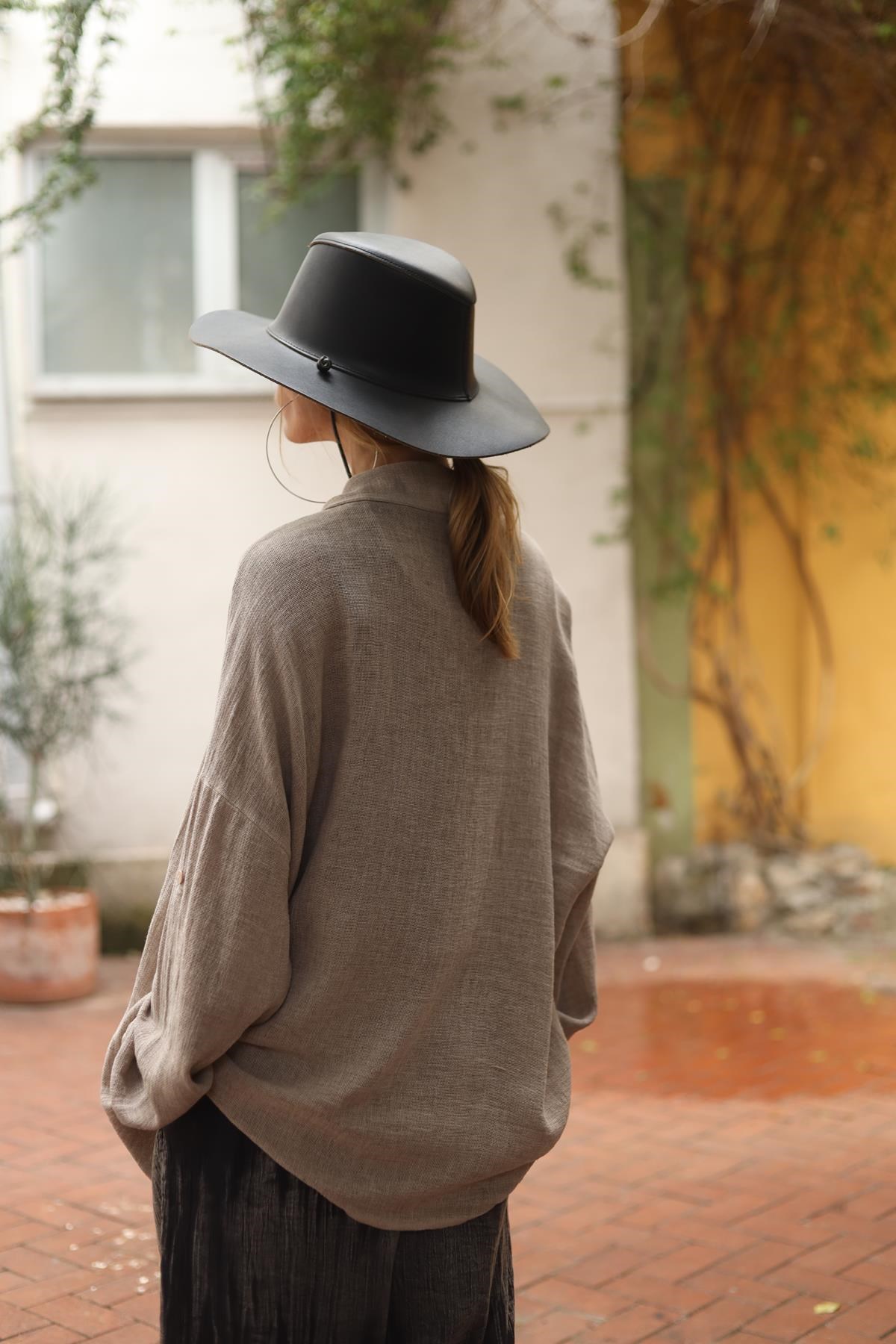 Camel Rengi Kolları Apoletli Soft Keten Gömlek (KG-FAL-007-KTN-CA-STD)