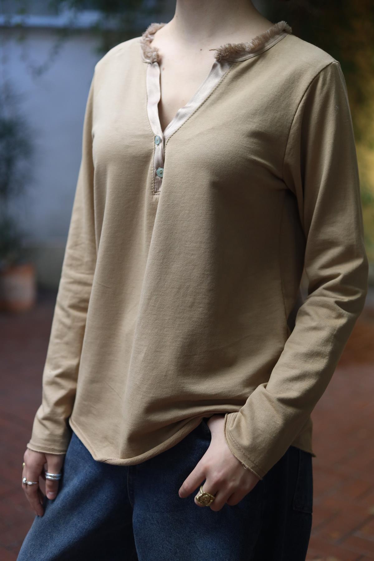 Camel Rengi Yakası Düğmeli Saçaklı Bluz (KB-BDK-005-PA-CA-STD)