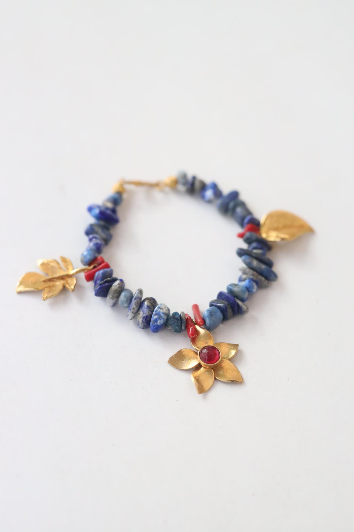 Çiçek Detaylı Lapis Bileklik