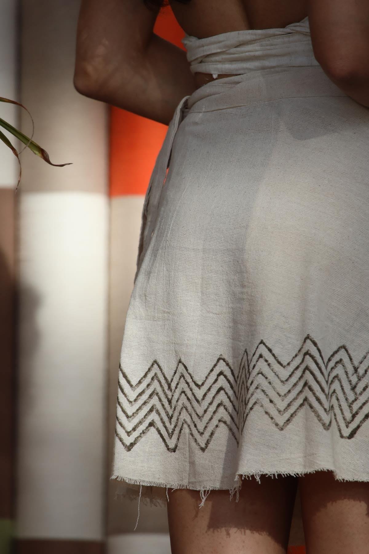 Cream Color Authentic Patterned Short Wrap Skirt (KET-RMR-027-PA-KR-STD)