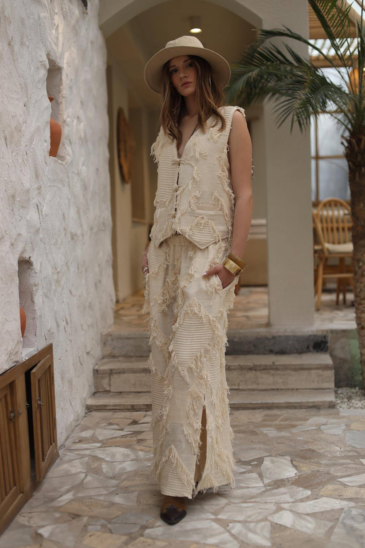 Cream Color Buttoned Sleeveless Blouse