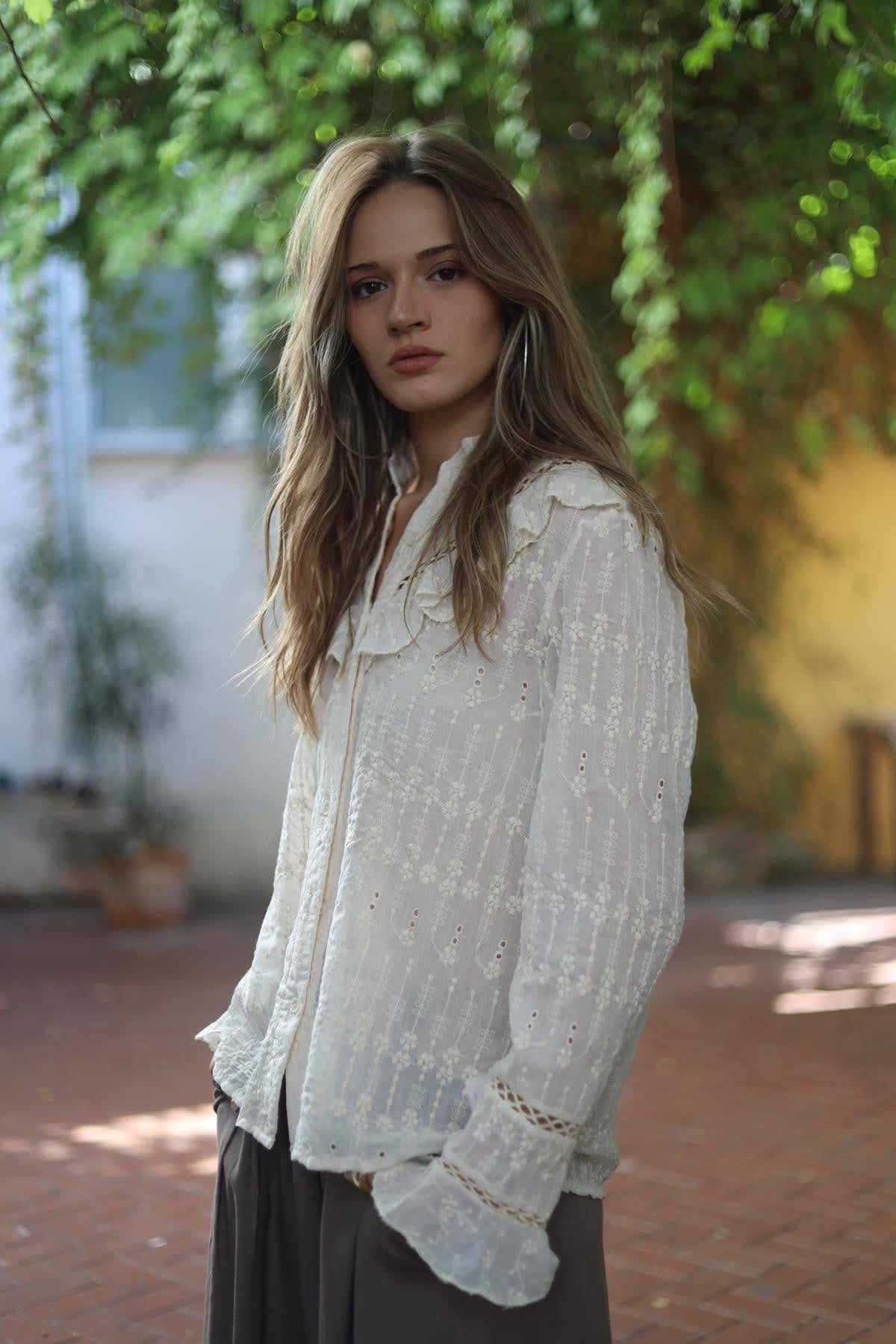 Cream Color Flounce Collar Lace Shirt (KG-ESQ-029-PA-KR1-S)