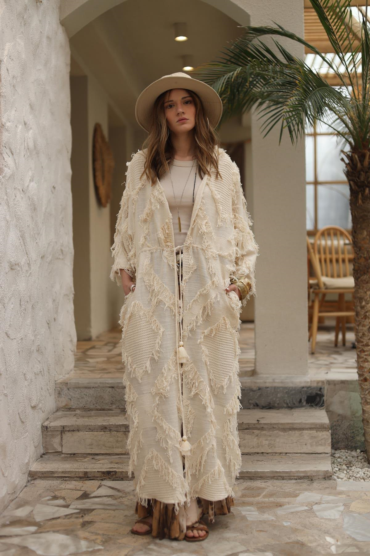 Cream Color Hooded Tassel Kimono (KKFN-RMR-021-PA-KR-STD)
