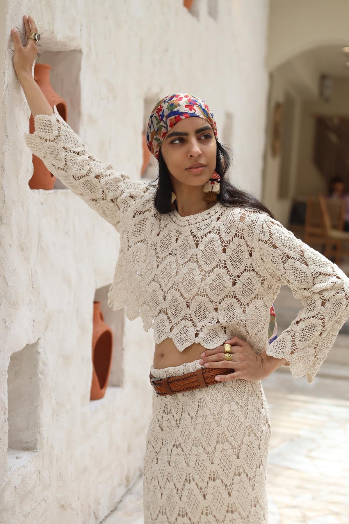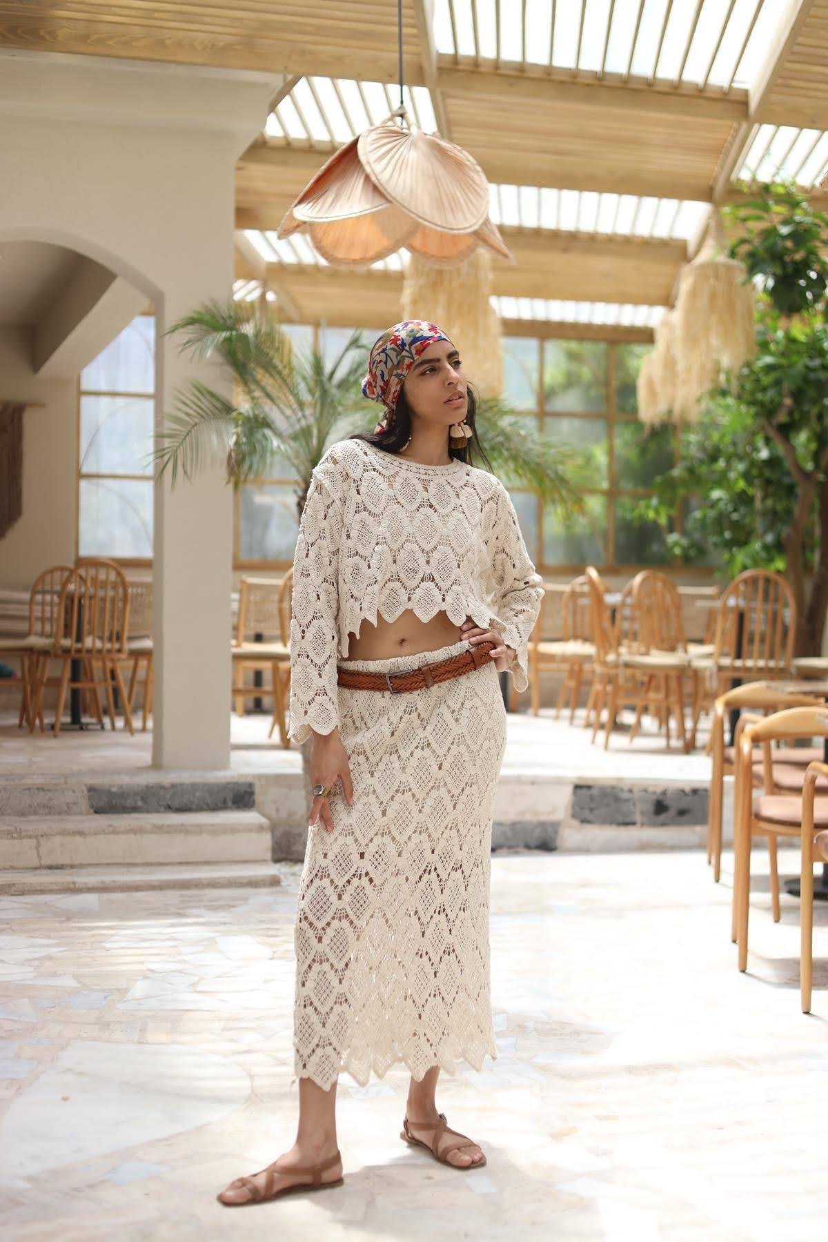 Cream Color Lace Blouse and Skirt Set (KTKM-AS-016-PA-KR-STD)