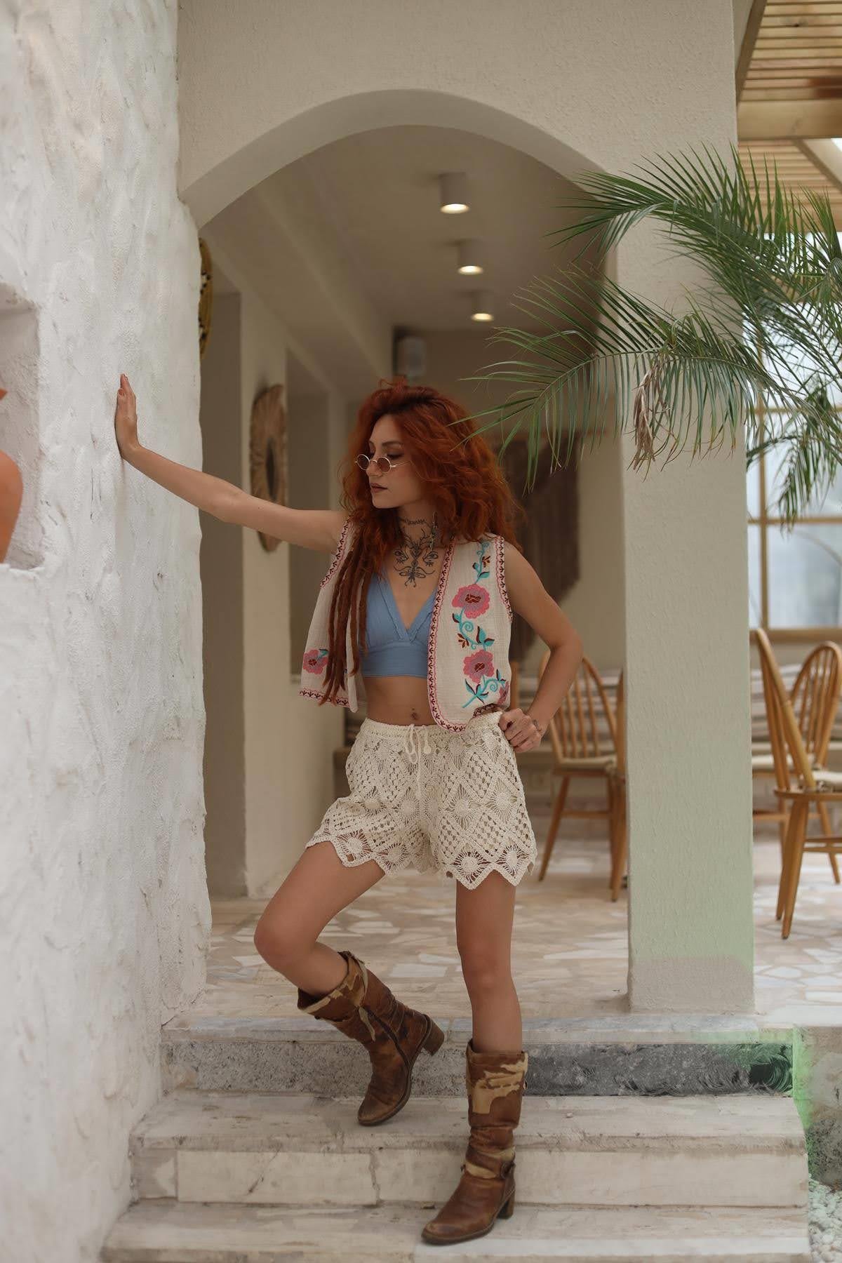 Cream Color Lace Short (KSRT-AS-002-PA-KR-STD)