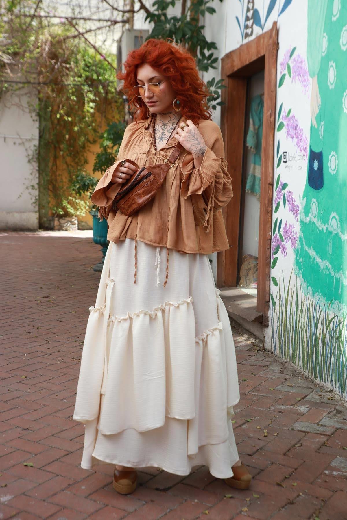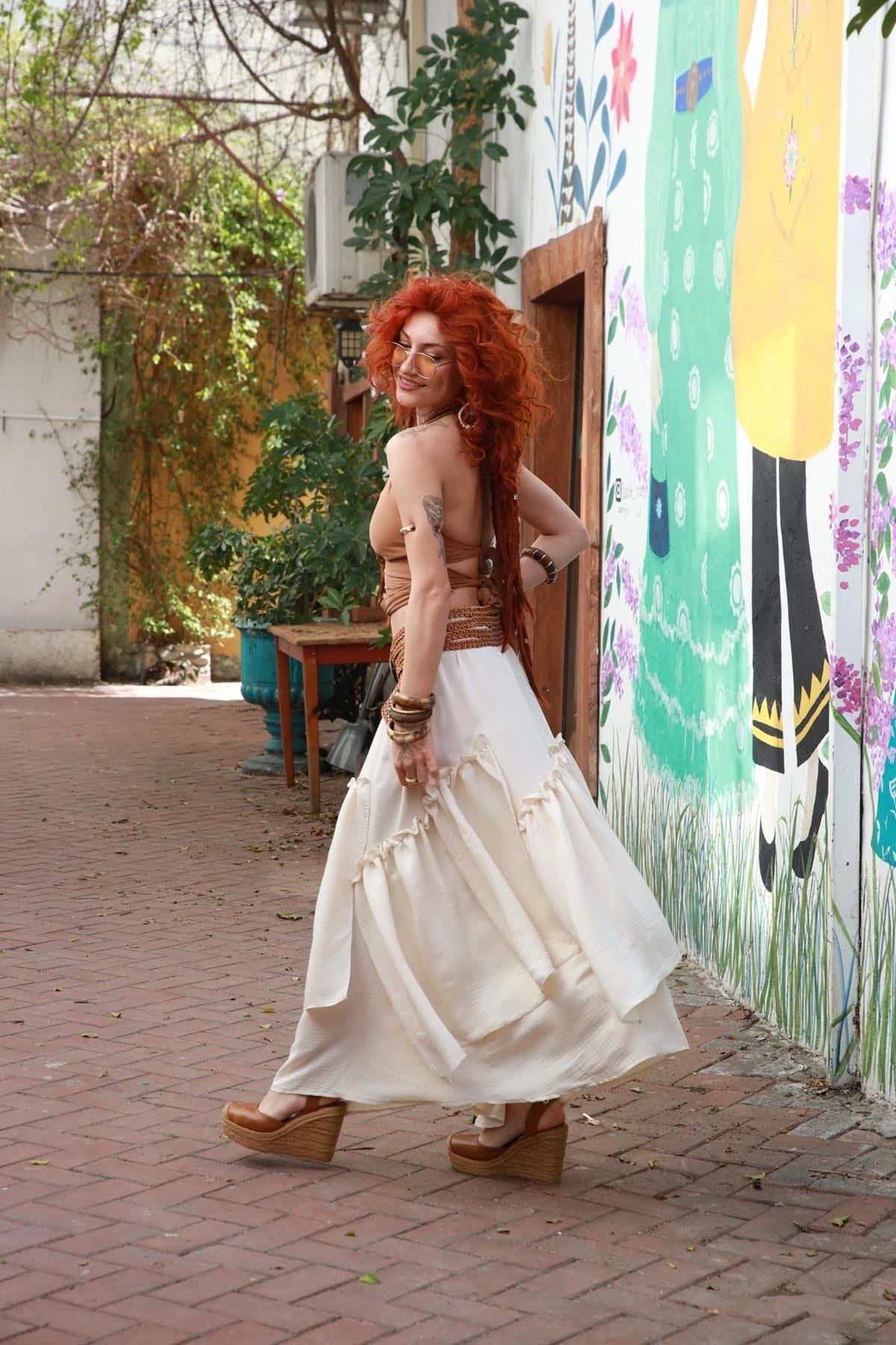 Cream Color Piece Detailed Ruffle Skirt