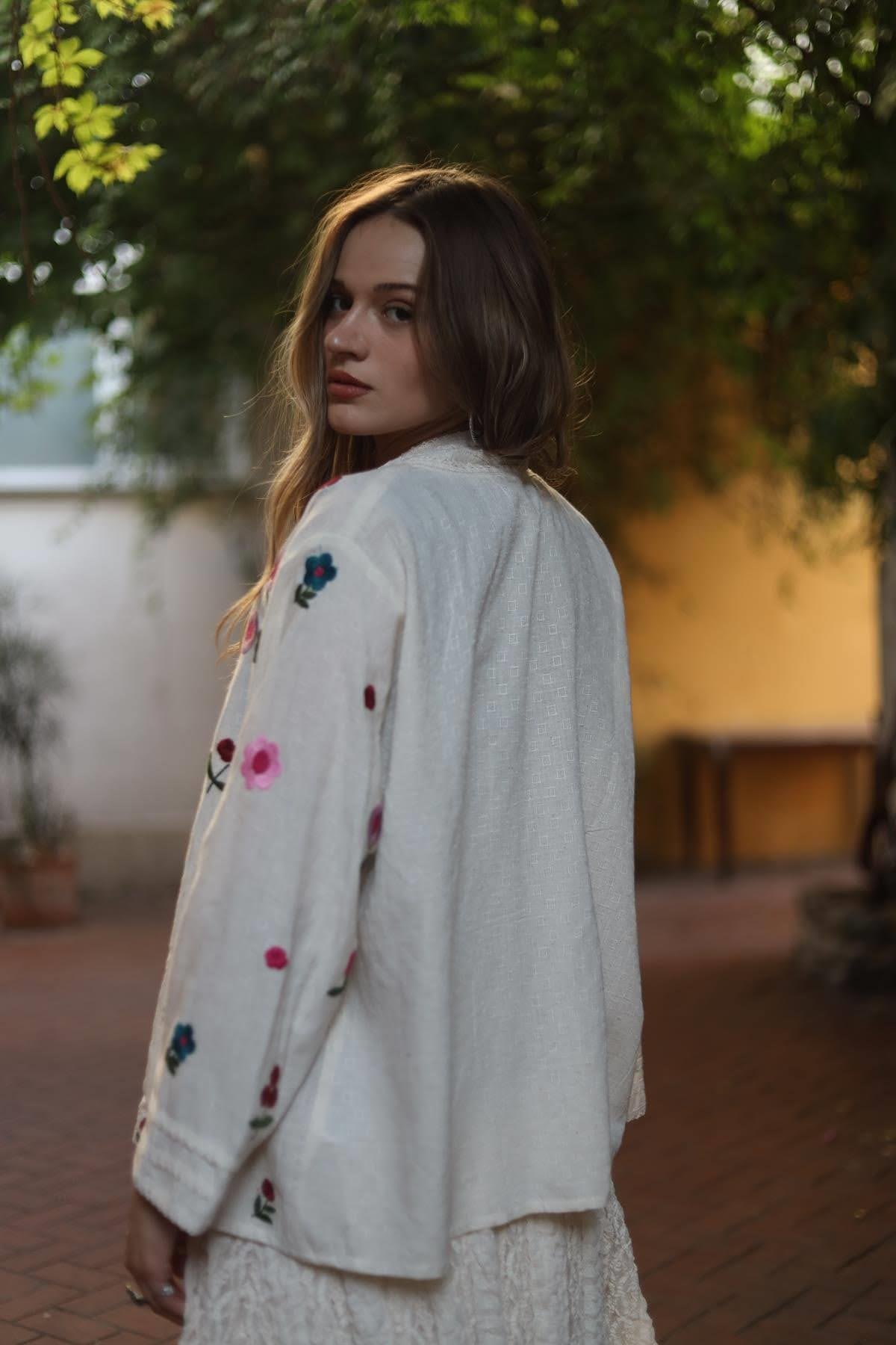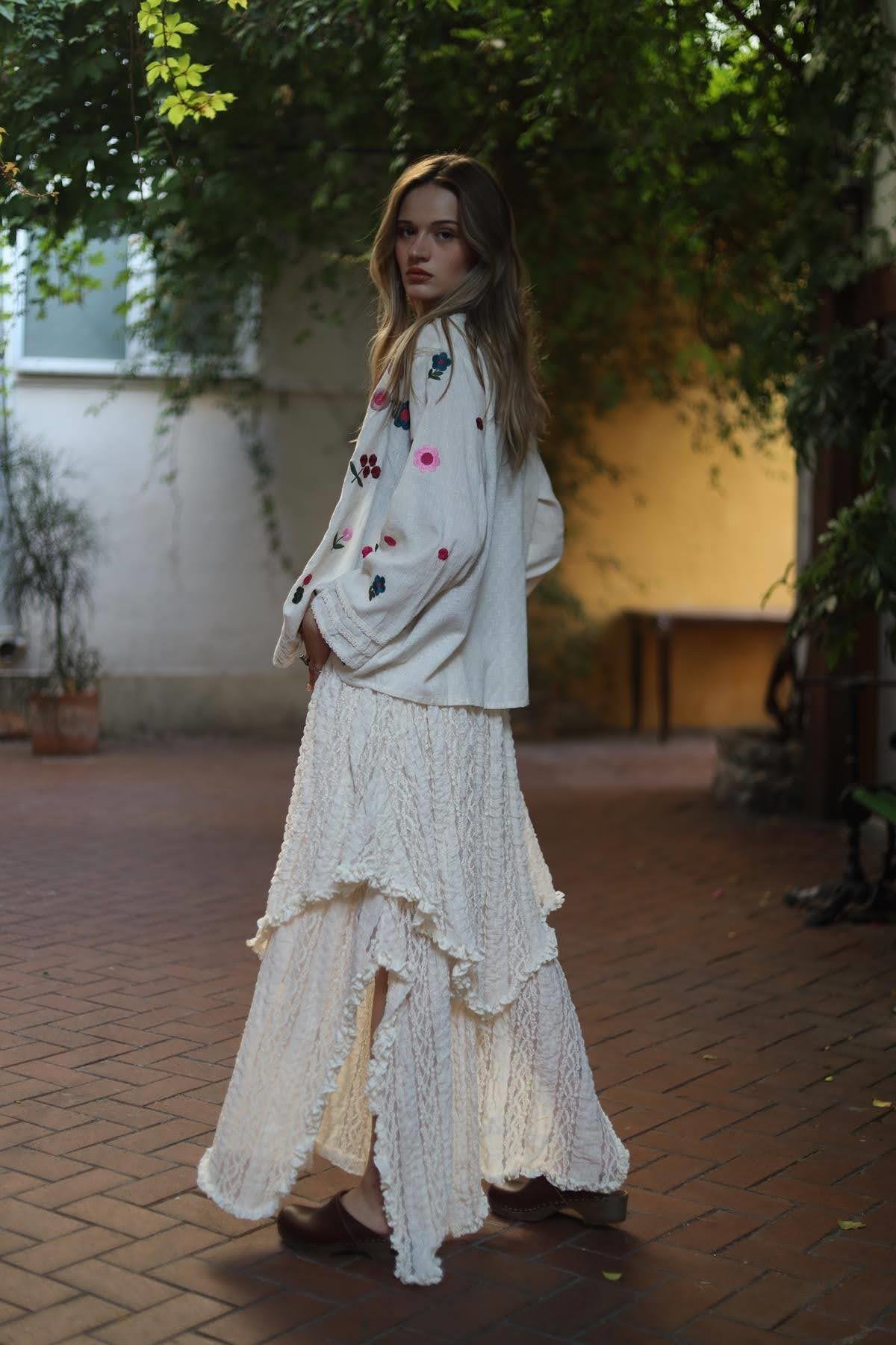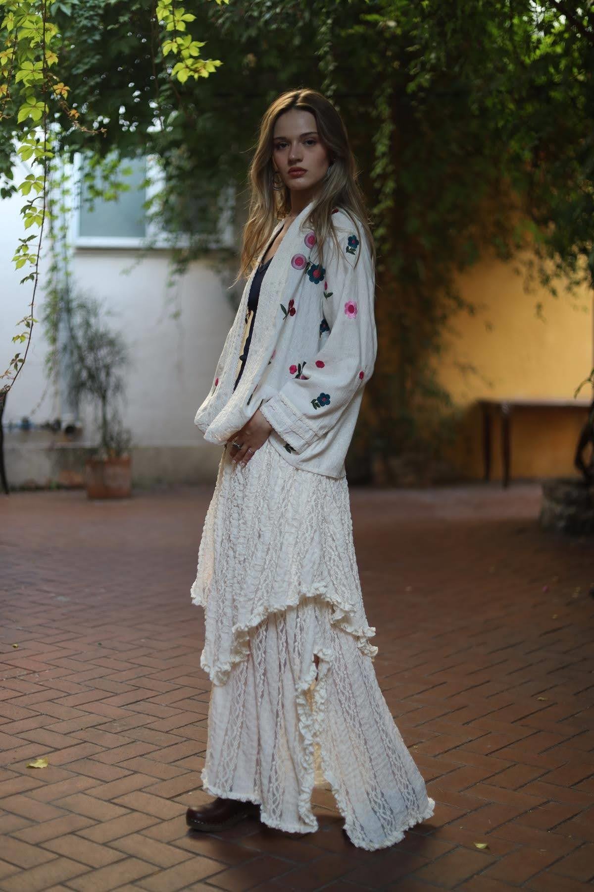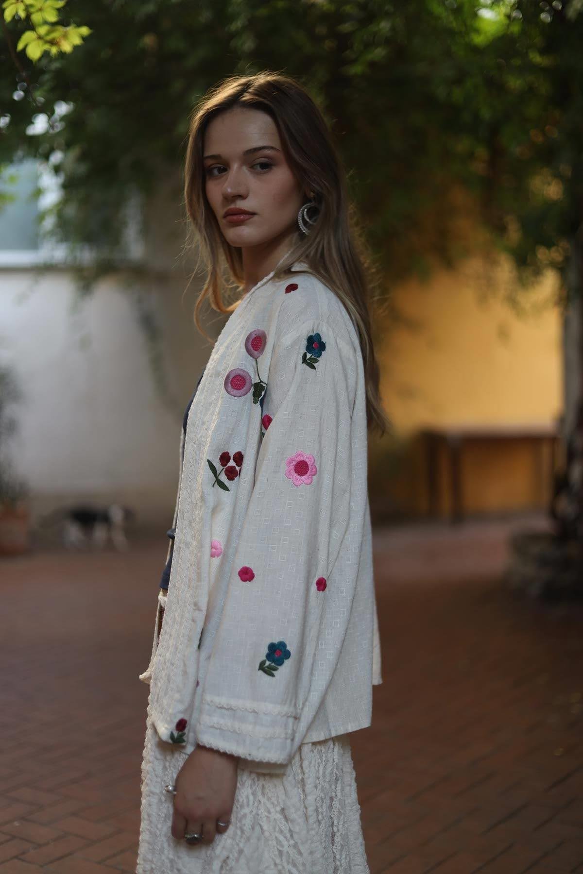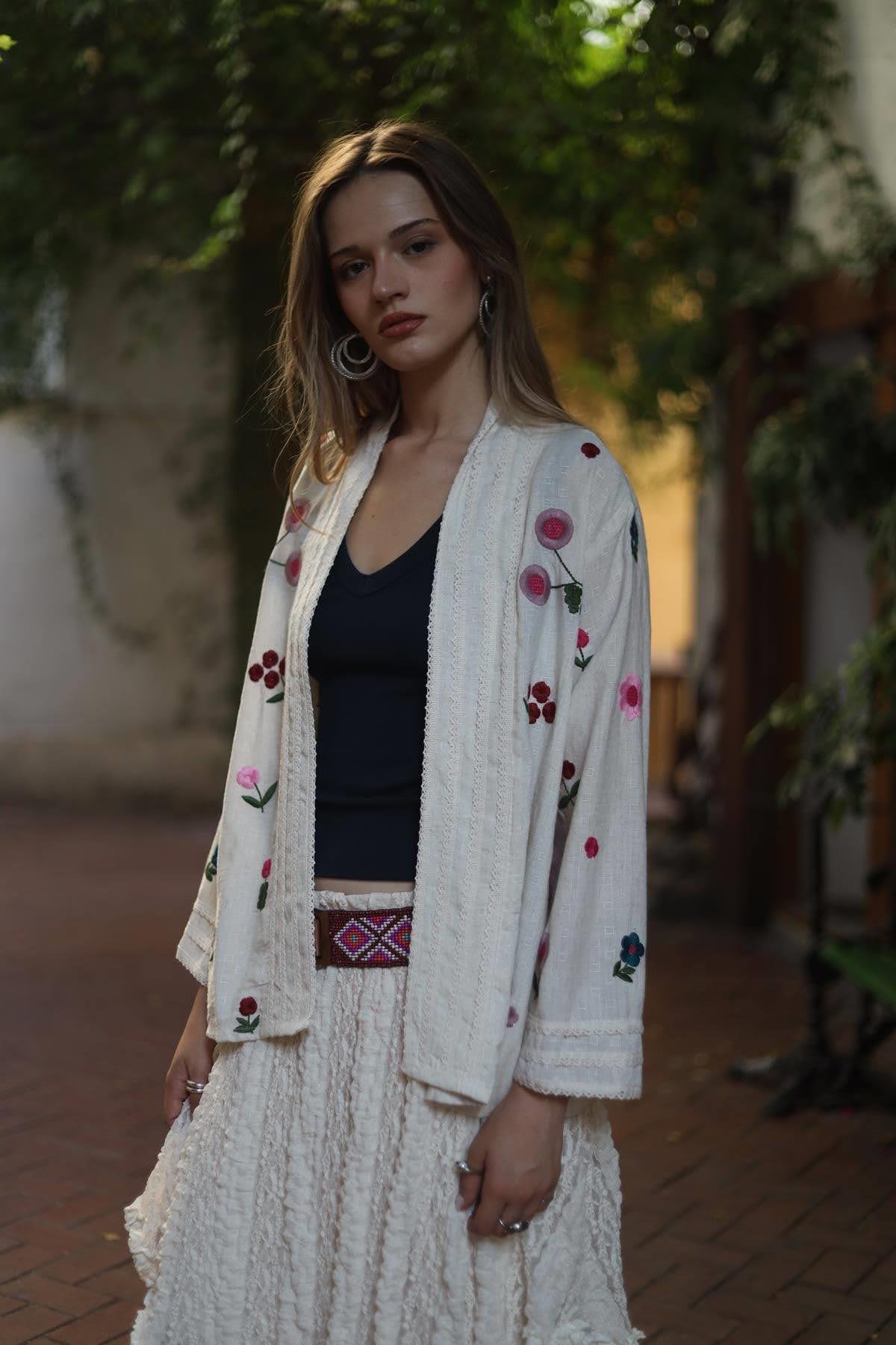 Cream Color Short Embroidered Caftan (KKFN-AS-020-KTN-KR1-STD)
